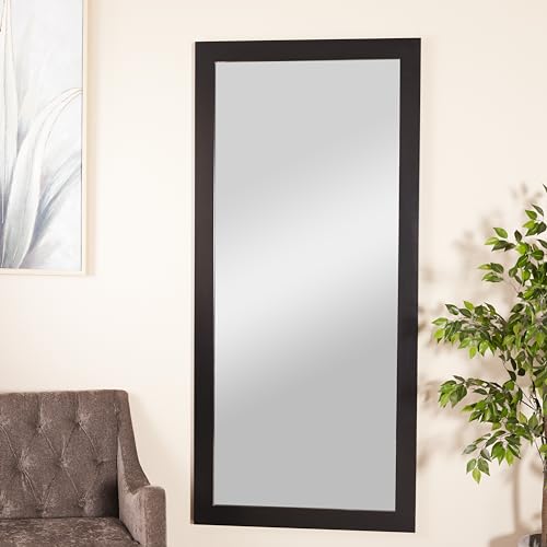 Deco 79 Wooden Room Wall Mirror Entryway Mirror, Wall Mounted Mirror 32" x 1" x 70", Black
