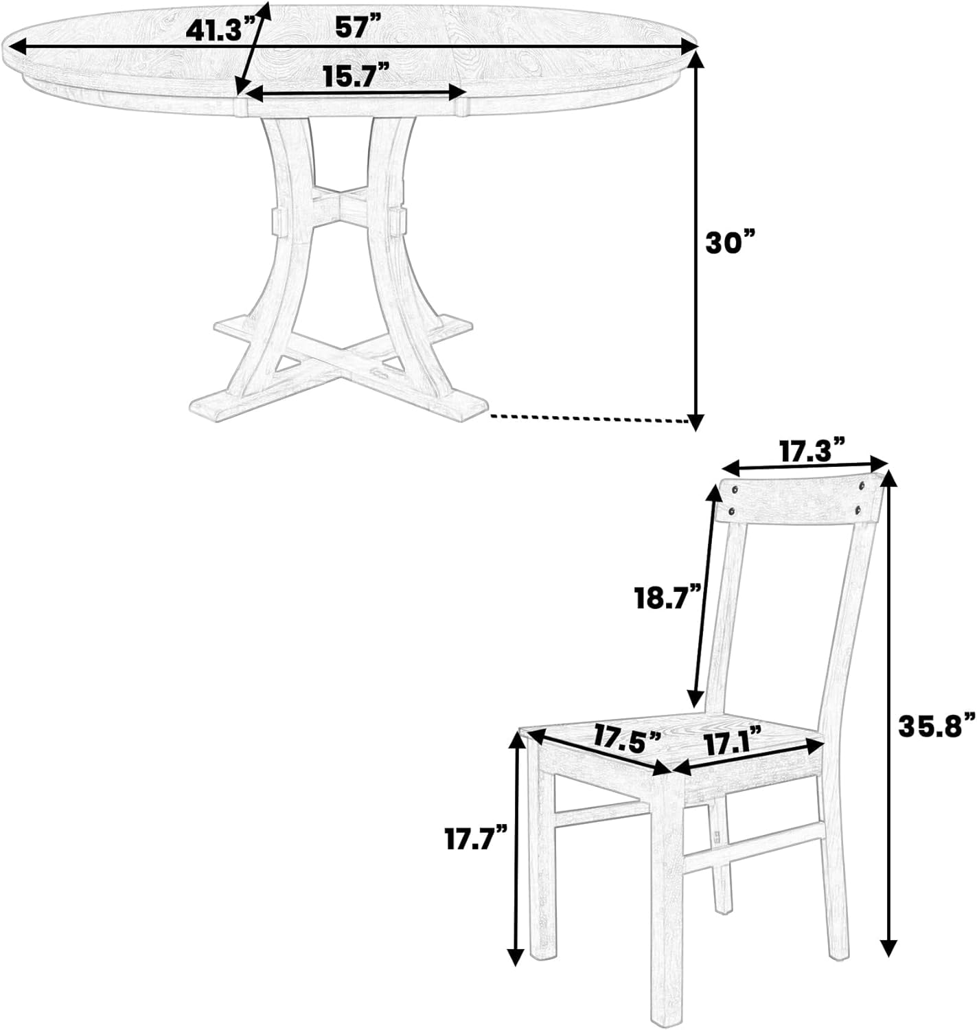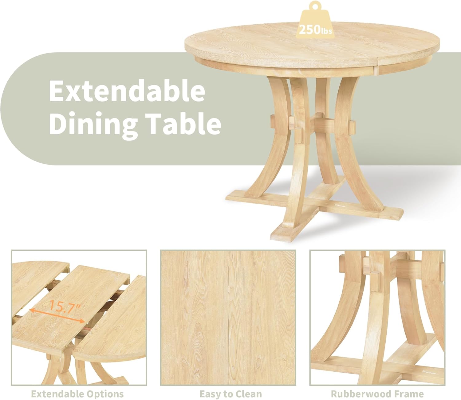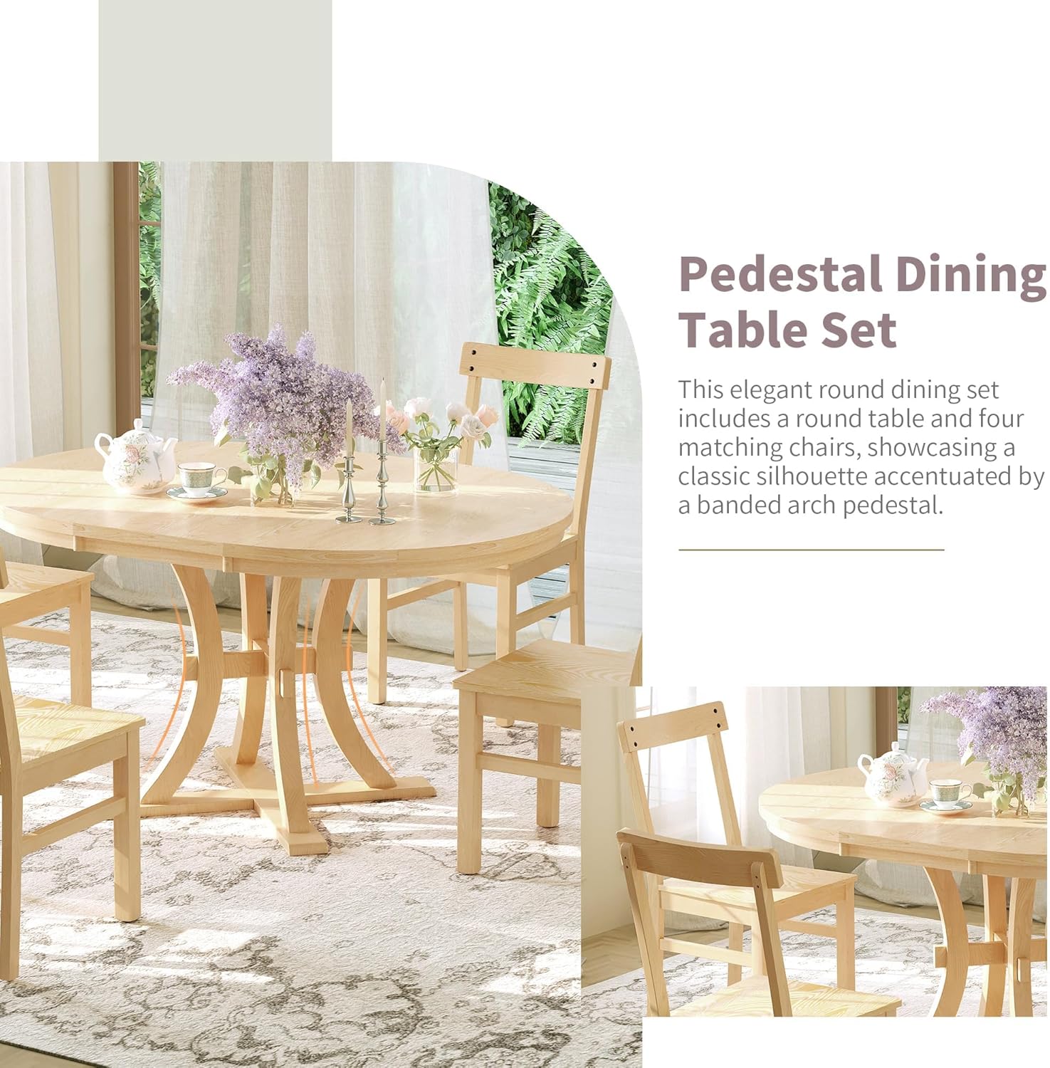 5-Piece Wood Dining Set with Round Pedestal Extendable Table and 15.7" Removable Leaf, Simple Dining Chirs for Small Places Natural Rustic Set Kitchen Table Furniture