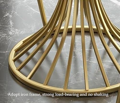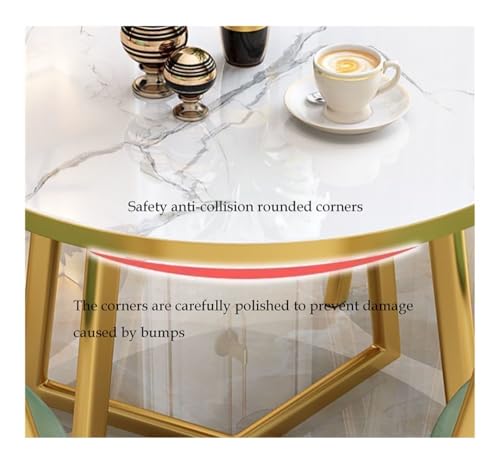 Round Dining Table Set for 4, Modern Kitchen Table and Chairs Set Round Faux Marble Dining Table Set Reception Table Set Upholstered Chair(Yellow,Blue 2)