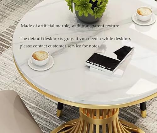 Round Dining Table Set for 4, Modern Kitchen Table and Chairs Set Round Faux Marble Dining Table Set Reception Table Set Upholstered Chair(Yellow,Gray 2)