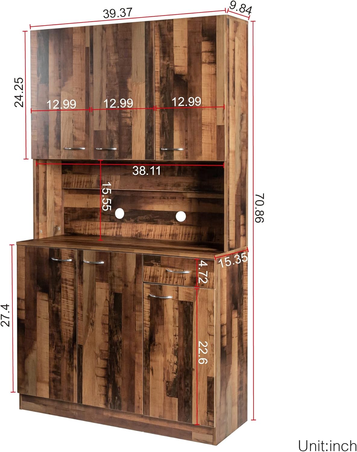 70.87" Tall Wardrobe& Kitchen Cabinet, with 6-Doors, 1-Open Shelves and 1-Drawer for Bedroom