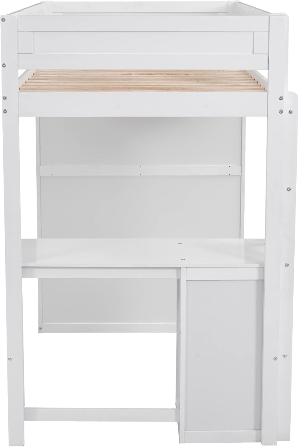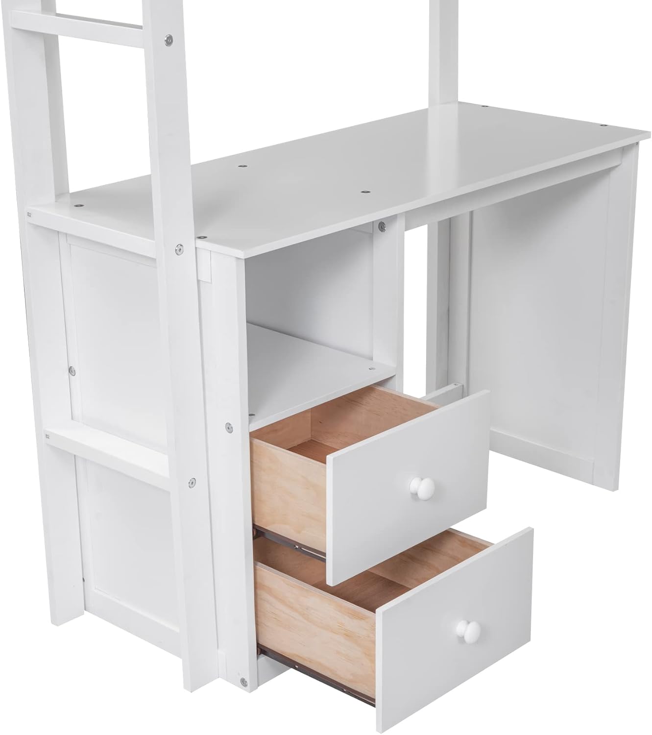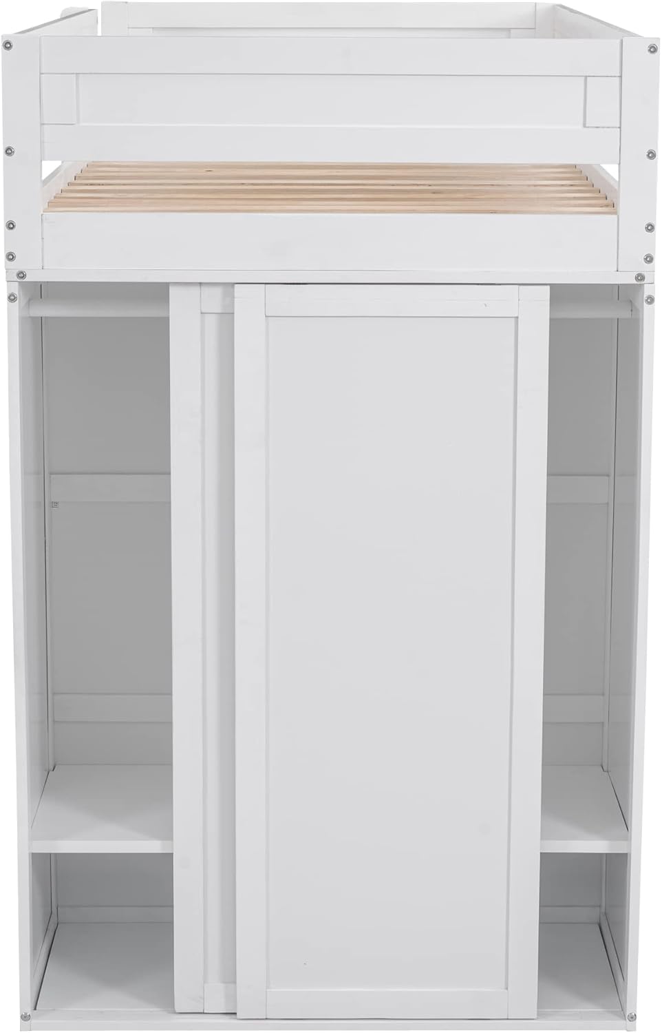 Harper & Bright Designs Twin Loft Bed with Wardrobe and Desk, Wood Twin Size Loft Bed with Storage Drawers and Cabinet for Girls Boys Teens,No Box Spring Needed,White