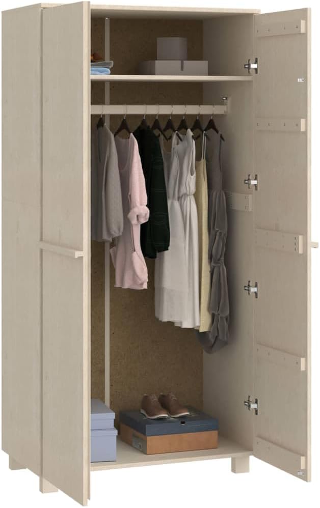 Wardrobe HAMAR Honey Brown 35"x19.7"x70.9" Solid Wood PineCloset Organizers and Storage Cabinets,Closet OrganizerSuitable for bedrooms, Living Rooms and Other Spaces Where Storage is Needed