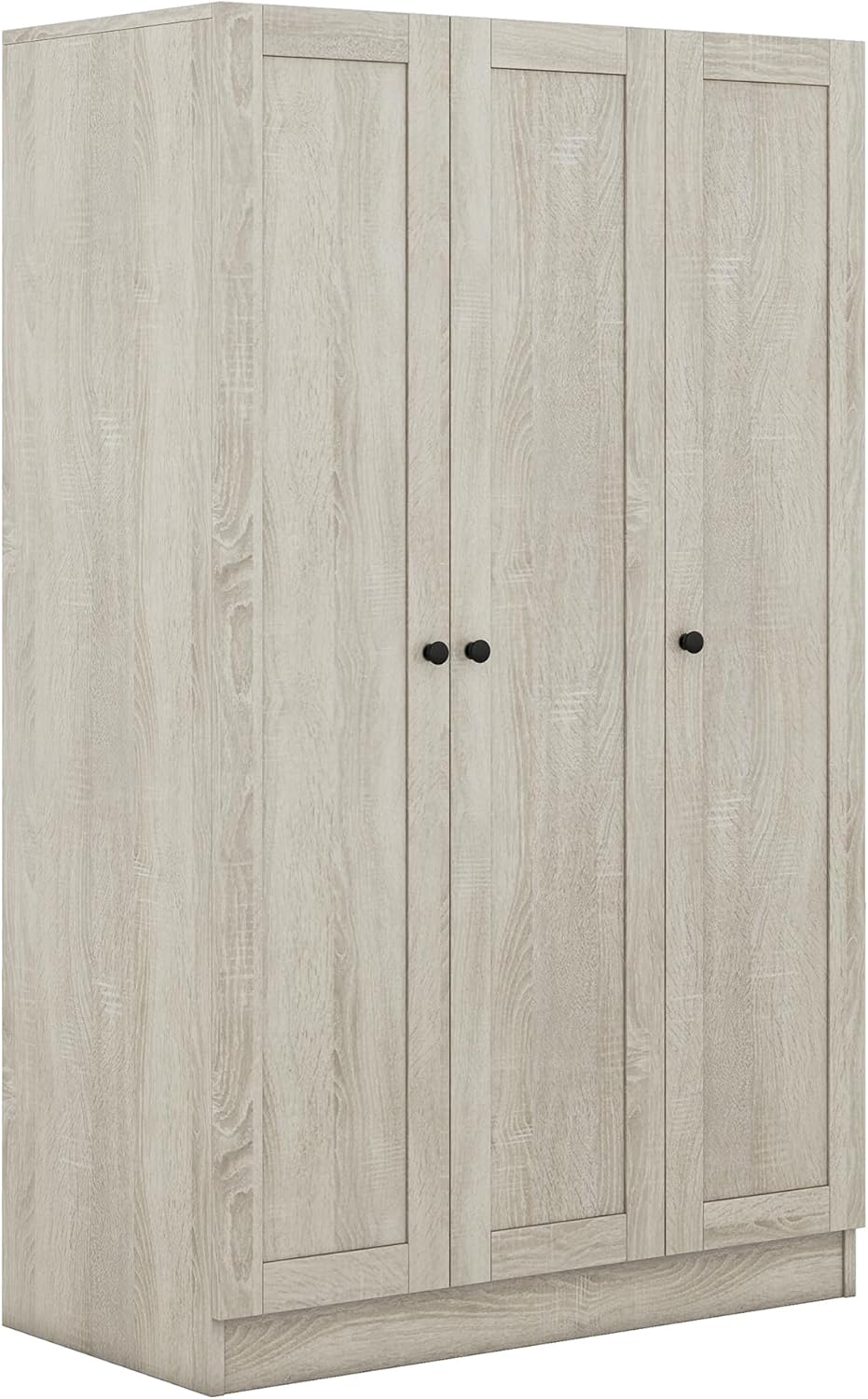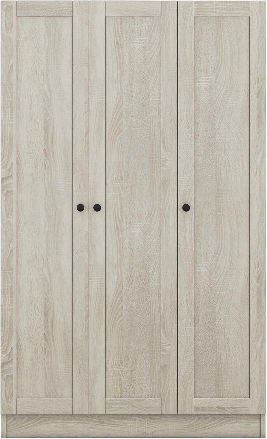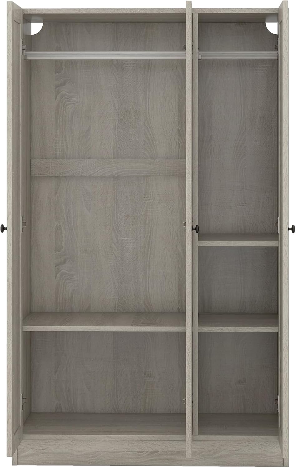 Stylish 3-Door Wardrobe with Shelving and Hanging Rod – Spacious Freestanding Bedroom Armoire Organizer, Gray