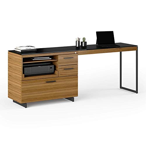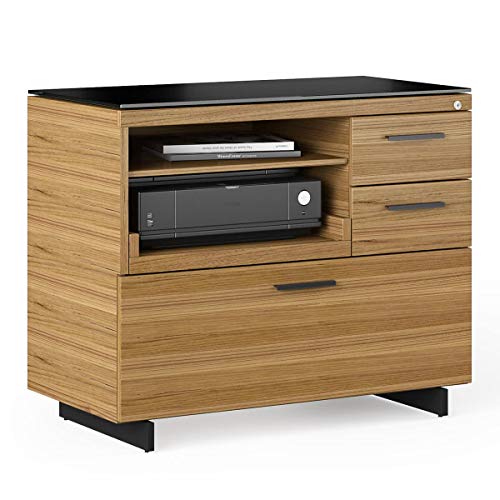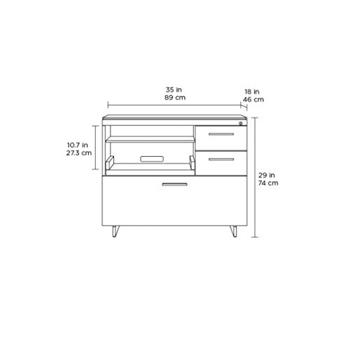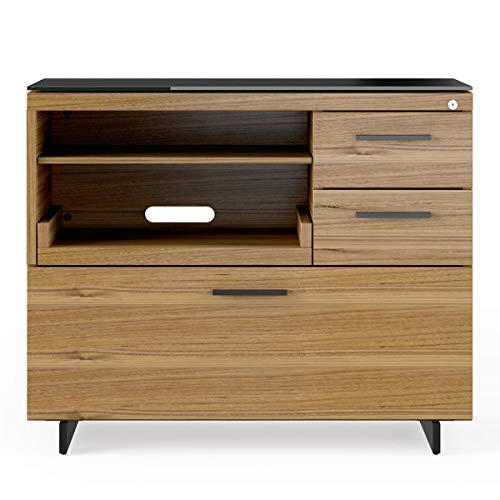 BDI Furniture Sequel 20 6117-35'' Locking Lateral 3-Drawer File Cabinet with Letter or Legal-size File Drawer, 2 Drawers, Printer Tray, Adjustable Shelf, Chocolate Stained Walnut, Satin Nickel