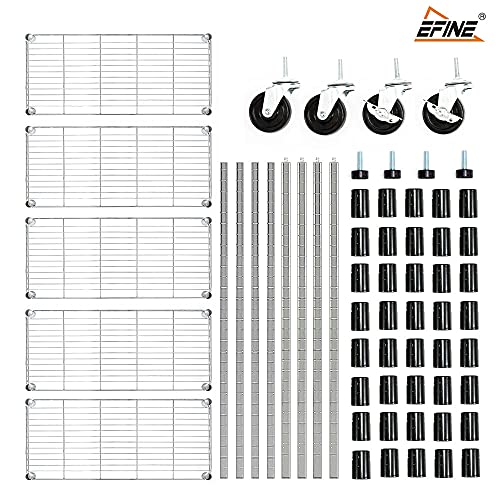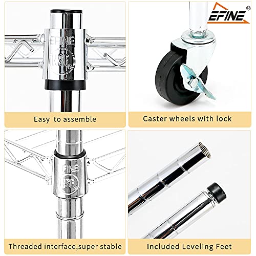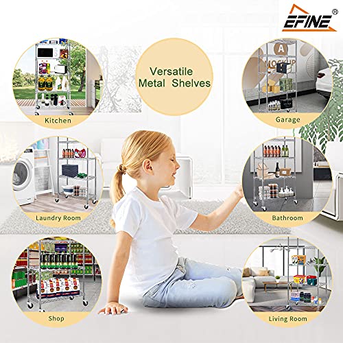 EFINE 4-Shelf Shelving Units and Storage on 3'' Wheels with 4-Shelf Liners, Adjustable Heavy Duty Steel Wire Shelving Unit for Garage, Kitchen, Office (36W x 14D x 57.7H) Pole Diameter 1 Inch