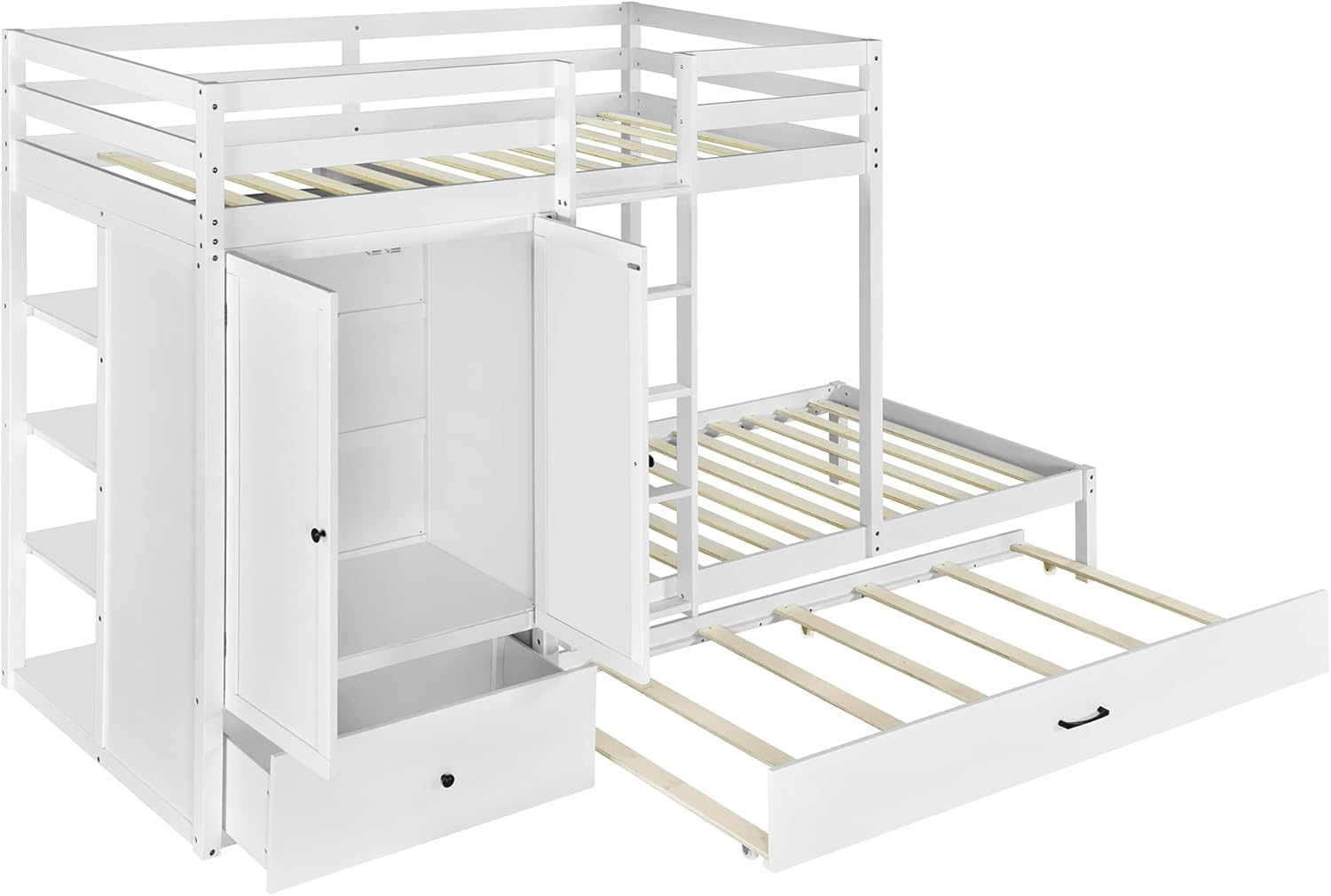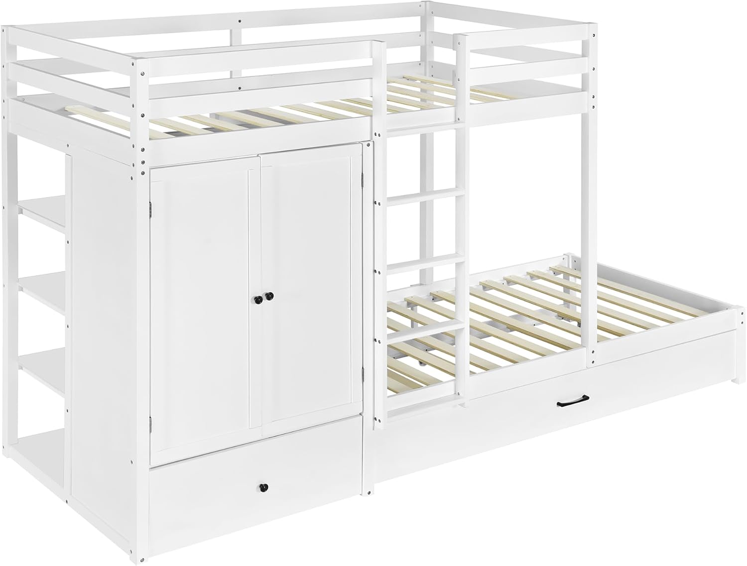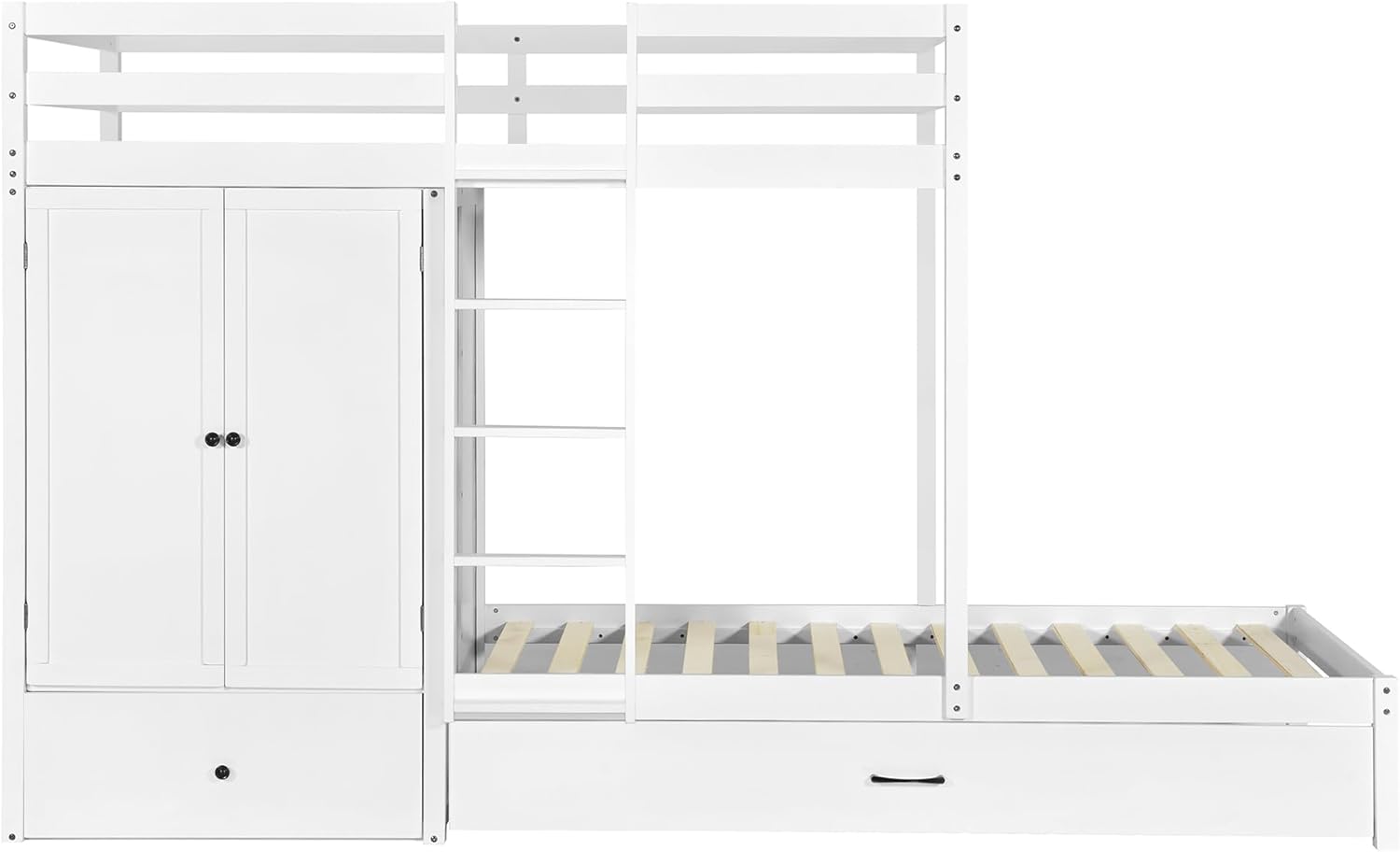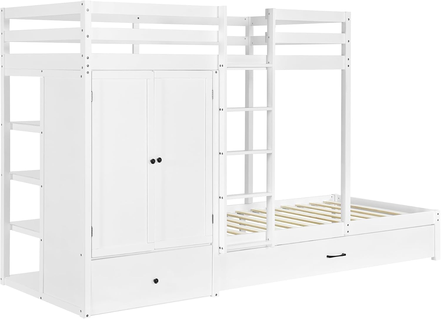 Twin-over-twin Bunk Bed with Wardrobe, Drawers and Shelves, White 108.5X 39.7X 69 inch(LxWxH)