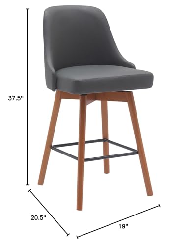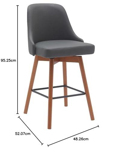 Armen Living Sicily 26" Seat Height Swivel Black Wood Bar Stool for Kitchen Island Counter in Light Gray Fabric
