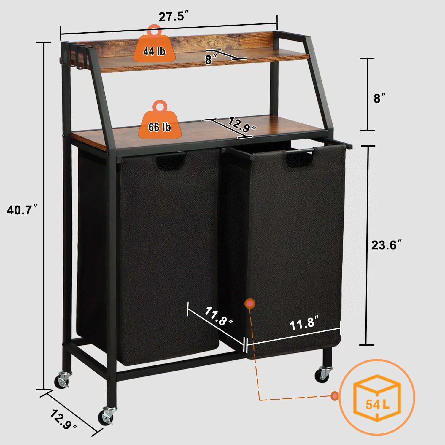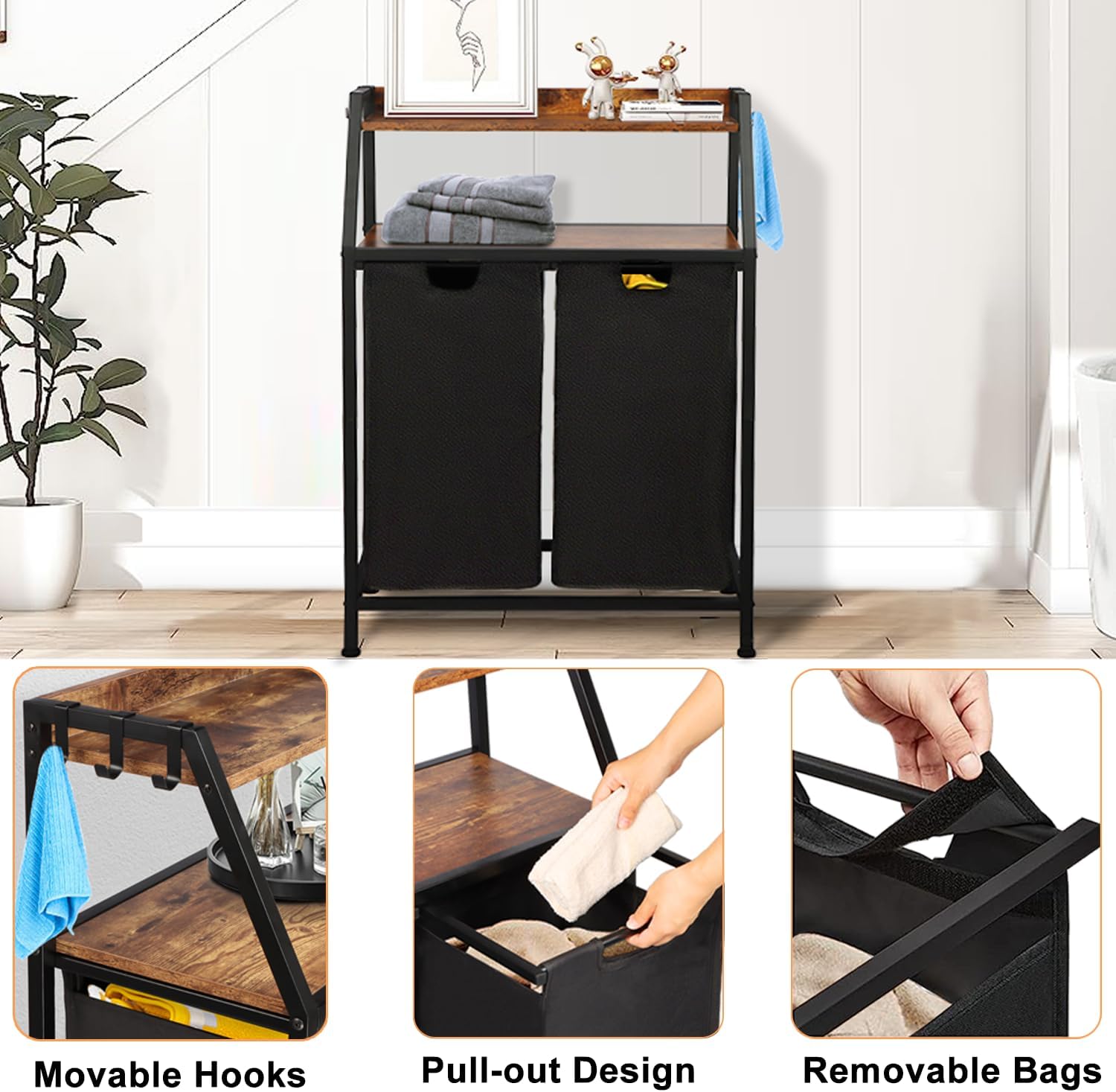 Console Table and Laundry Sorter 2 Section Bundles, Hallway Entrance Table, Rolling Laundry Basket with Wheels, for Living Room, Laundry Room, Rustic Brown