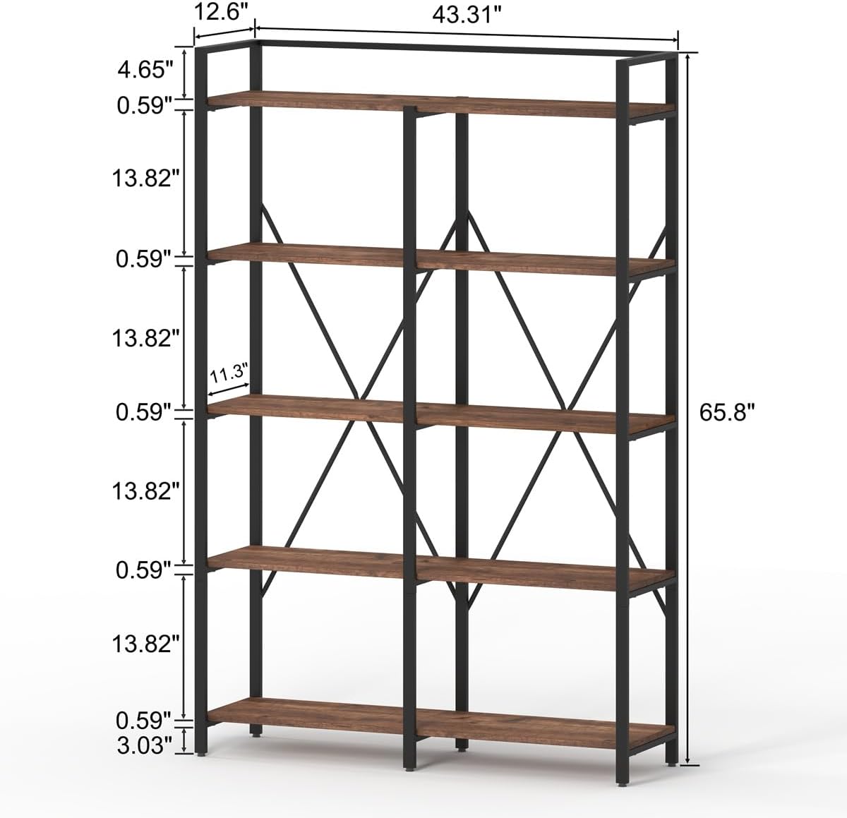 BON AUGURE Rustic Console Table Behind Couch, Farmhouse Large Book Shelves for Living Room and Bedroom(Rustic Oak)