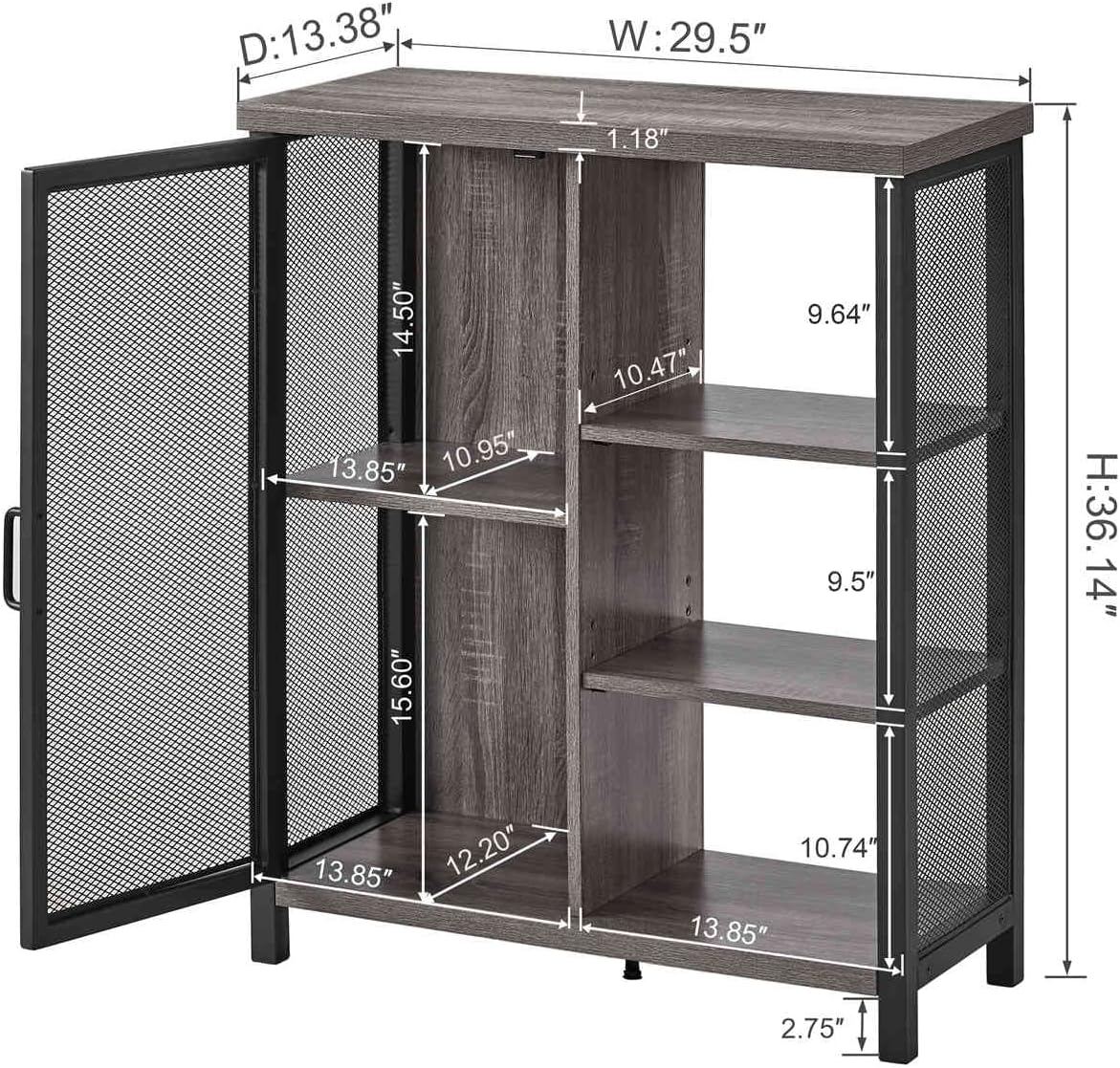 BON AUGURE Industrial Coffee Bar Cabinet for Home, Rustic Console Table Behind Couch, Wood and Metal Furniture Set for Living Room(Gray Oak)