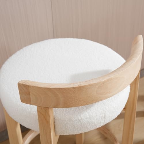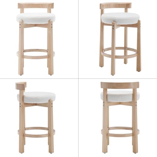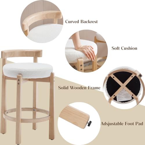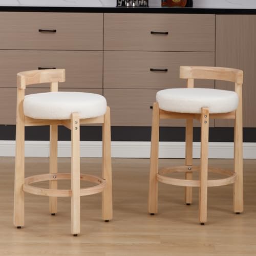 Mid-Century Bar Stools Set of 2, 26.5 Inch Linen Counter Height Upholstered Barstools Bar Chairs with Solid Wooden Legs for Kitchen Island Dining Room, Beige