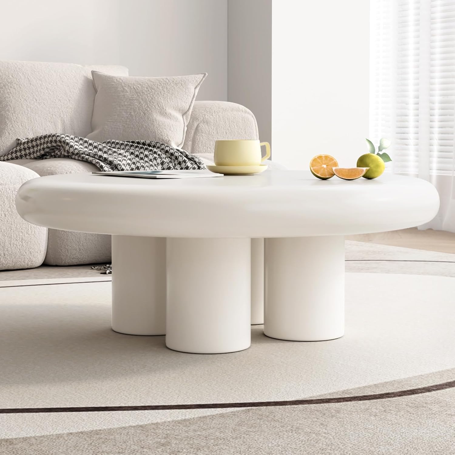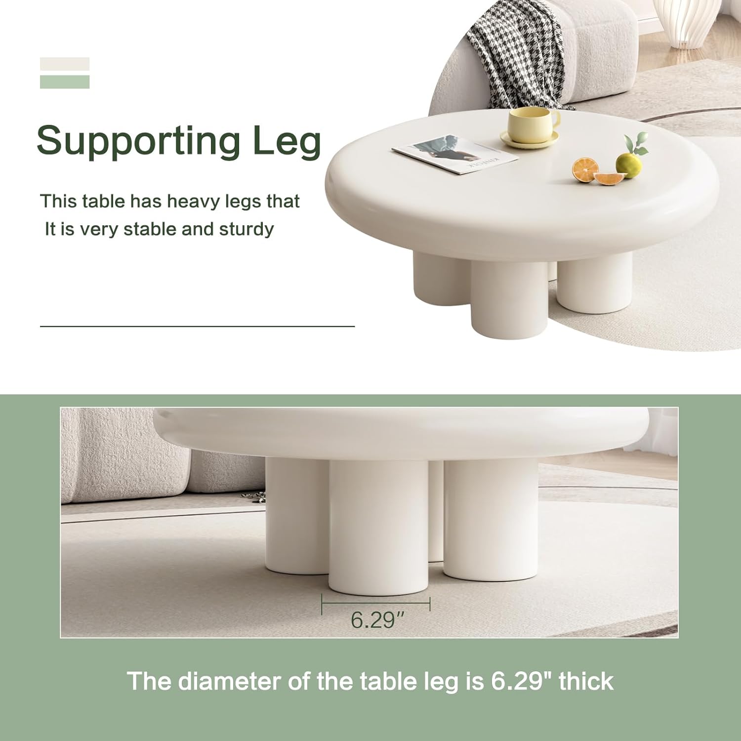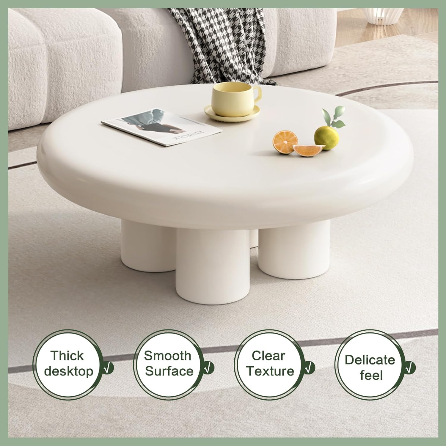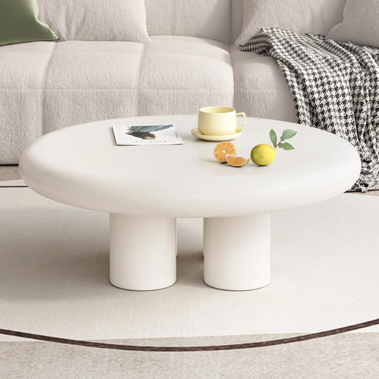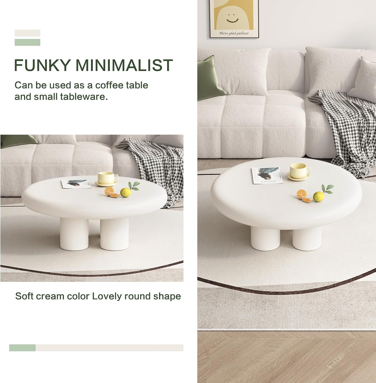 Small Round Coffee Table, Modern Minimalist Living Room Center Table, Cute Drum Coffee Table 4 Legs, Unique Low Tea Table, Office Desk, Balcony, Diam 35.43" White