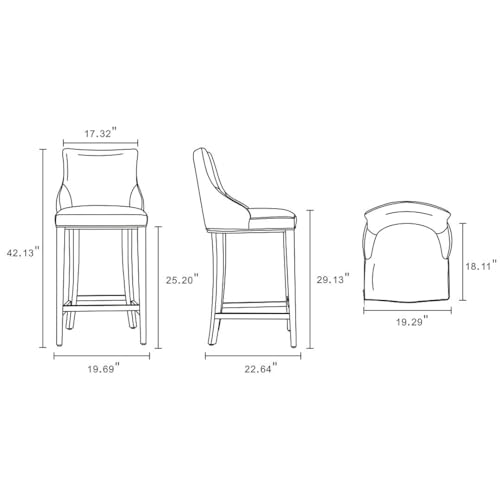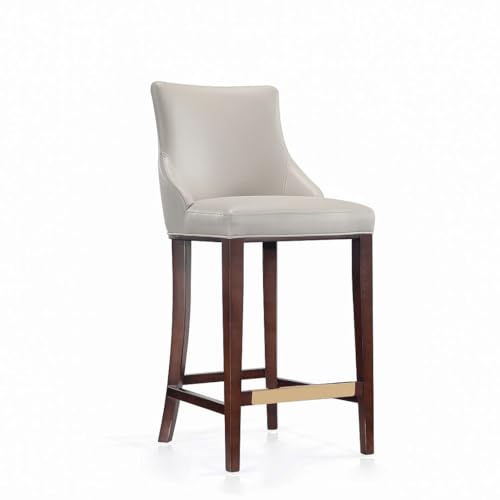 Manhattan Comfort Shubert Modern Barstool with Backseat | Upholstered Leatherette, Beech Wood Legs | Perfect Bar Stool for Bar and Kitchen | Commercial Grade | Fully Assembled, Set of 1, Light Grey
