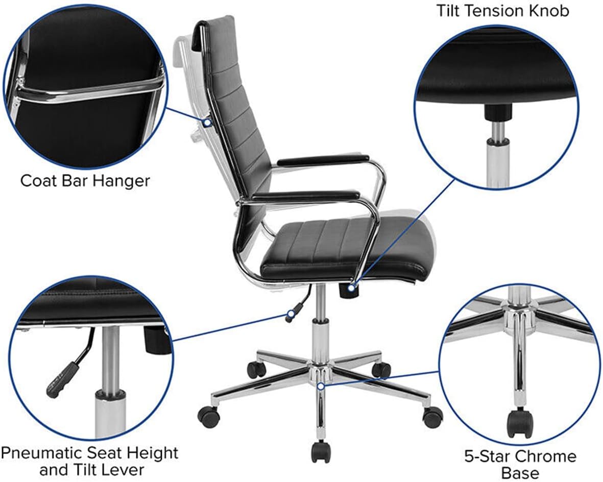 Saranya 18 Shop New Black High Executive Office Chair Seat Height Swivel Arm's Adjustable with PU Leather Ergonomic Back Conference Desk Studying Work Steel 27.25"L x 27.25''W x 41.5" - 45"H of Set
