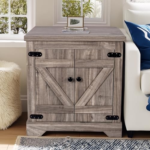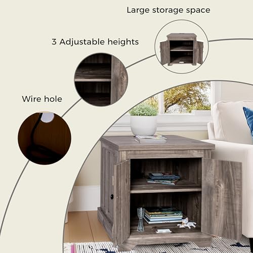 MINCETA End Tables with Charging Station,25" Farmhouse Wooden Sofa Side Table with Storage,Square Adjustable Shelf End Table for Living Room,Natural Oak