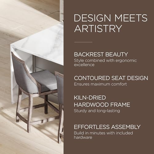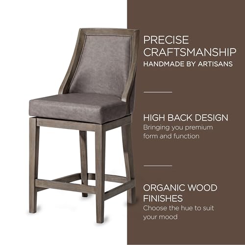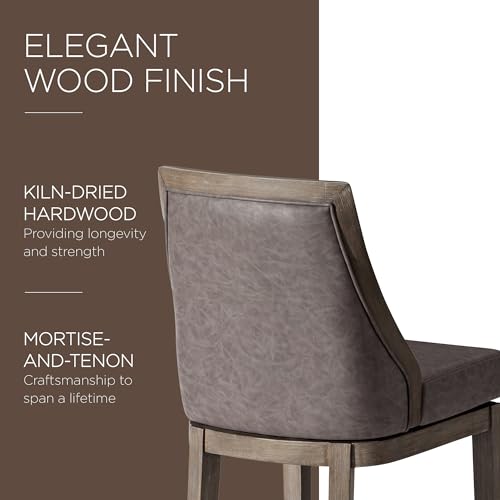 Maven Lane Vienna 31 Inch Tall Bar Height Rotating High Back Barstool in Reclaimed Oak Finish with Ronan Stone Vegan Leather Seat, Set of 2
