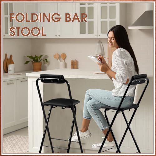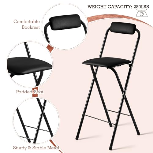 Geelin 4 Pcs 25.6 Inch Folding Chair Stool Chair Foldable Chair Portable Folding Chairs with Padded Seats Small Bar Office Guitar Desk Counter Fold up Sitting Stool Chair for Adults Kids