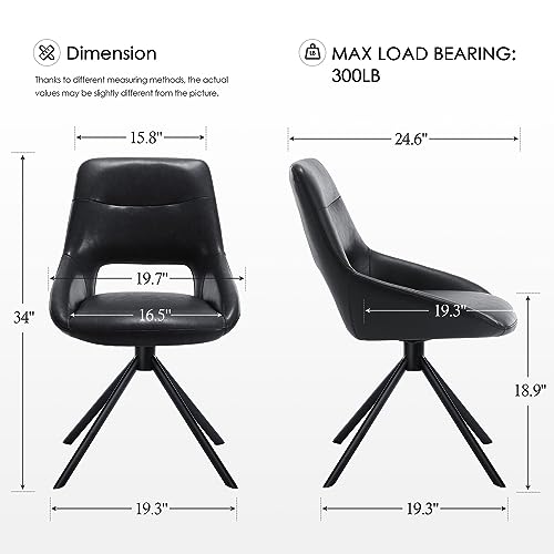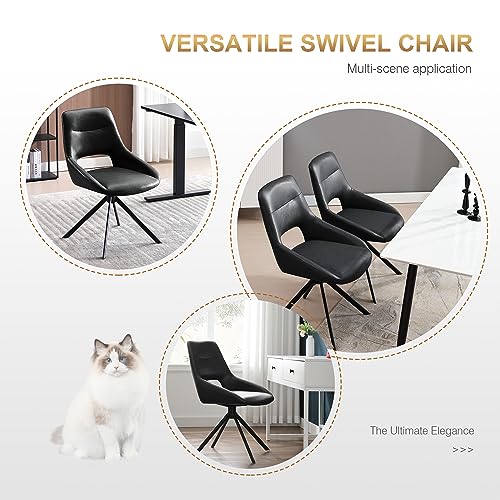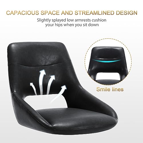 Zesthouse Modern Desk Chair No Wheels, Swivel Vanity Chair with Hollow Back, Armless Home Office Chair for Girls Women, Black Faux Leather Computer Task Chair for Bedroom
