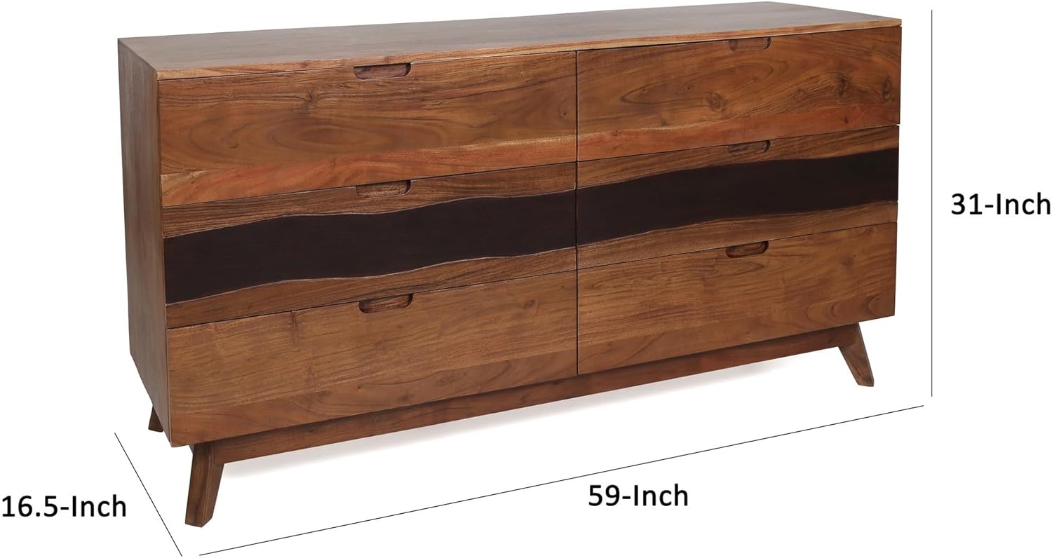 Benjara BM285077 59 in. Acacia Wood 6 Spacious Drawers Hedy Long Dresser - Brown Finish