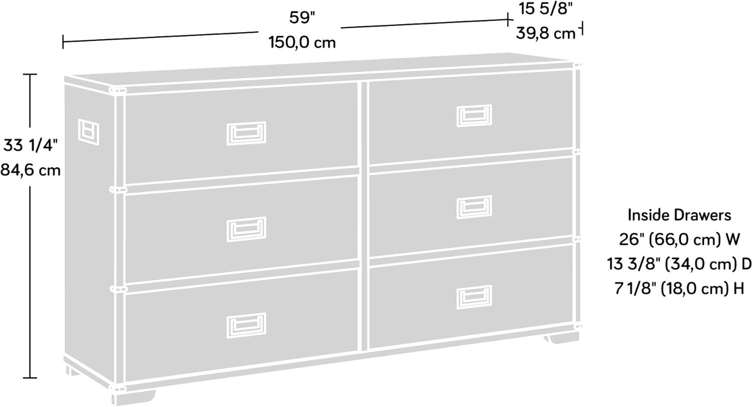 Sauder Vista Key Dresser, L: 59.06" x W: 15.67" x H: 33.31", Blaze Acacia Finish