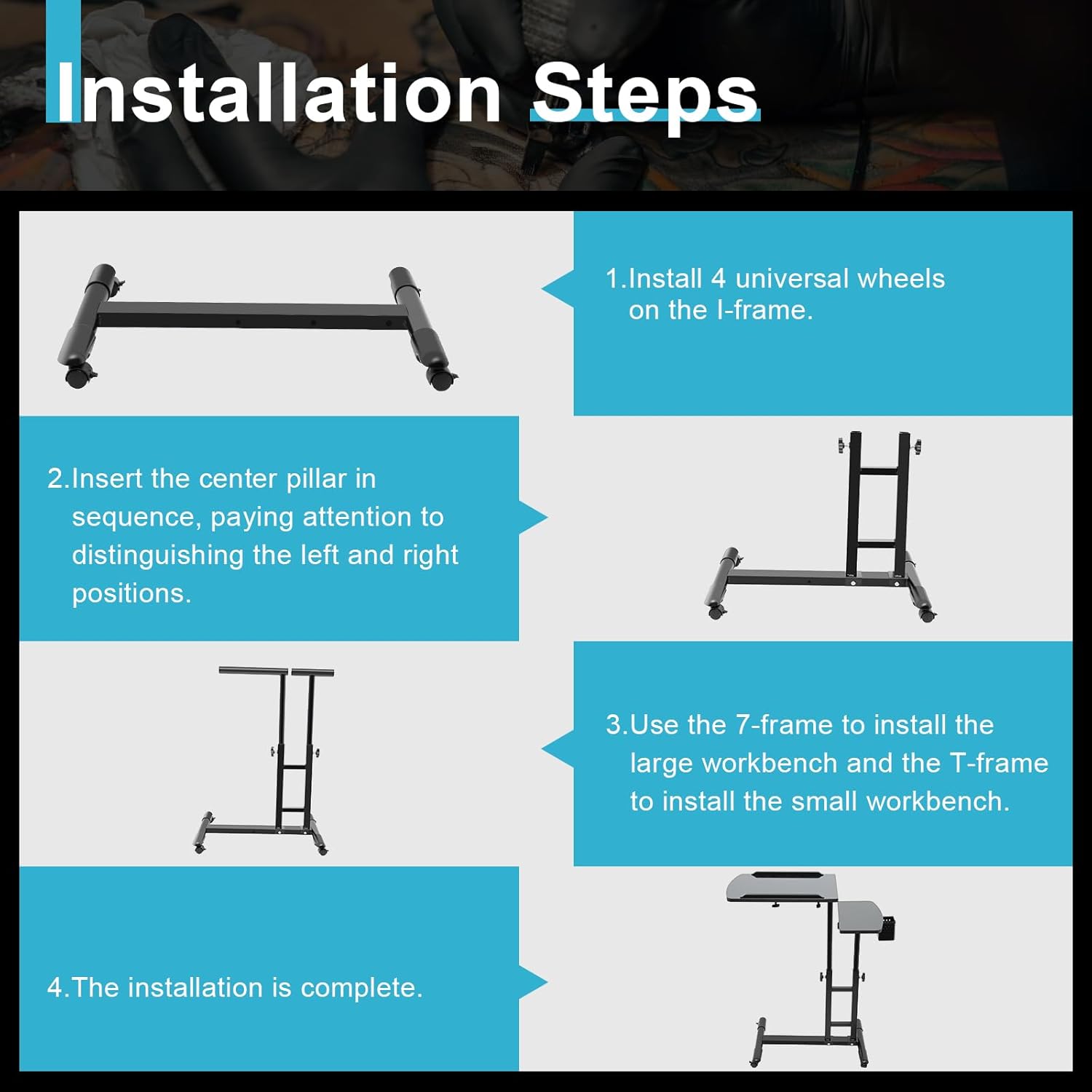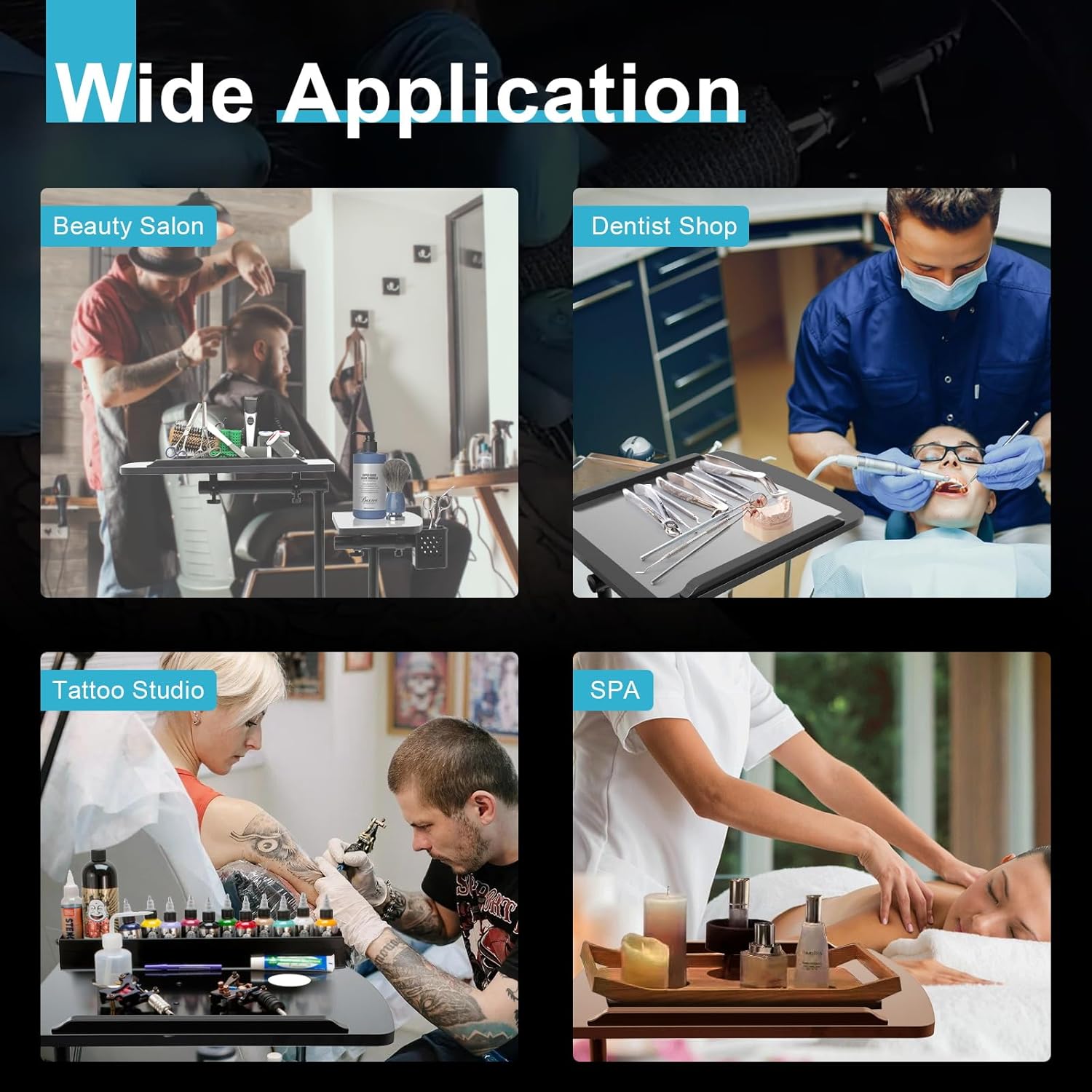 Tattoo Workstation, Height Adjustable Tattoo Tray Rolling Work Station with 2 Tables, Double Countertops Large Tattoo Mobile Work Station Stand, for Tattoo Studio, Black