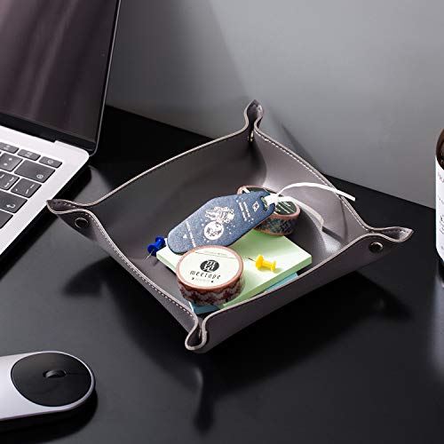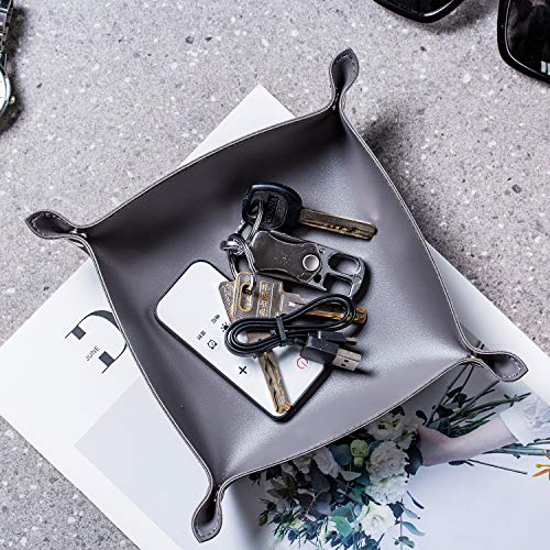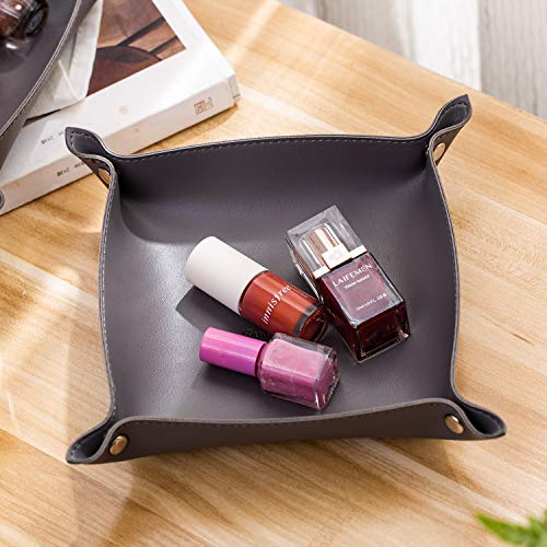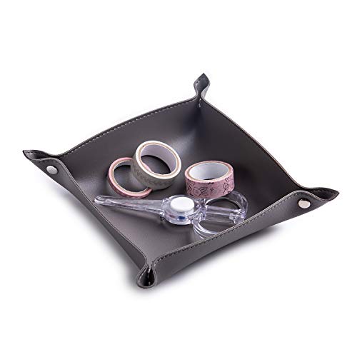 Foldable Valet Tray Jewelry Key Catchall Tray for Rings Watches Earrings, Dice,Coin,Entryway Tabletop Organizer Storage box, Coffee Table,Travel-Friendly Nightstand Dish,Brown