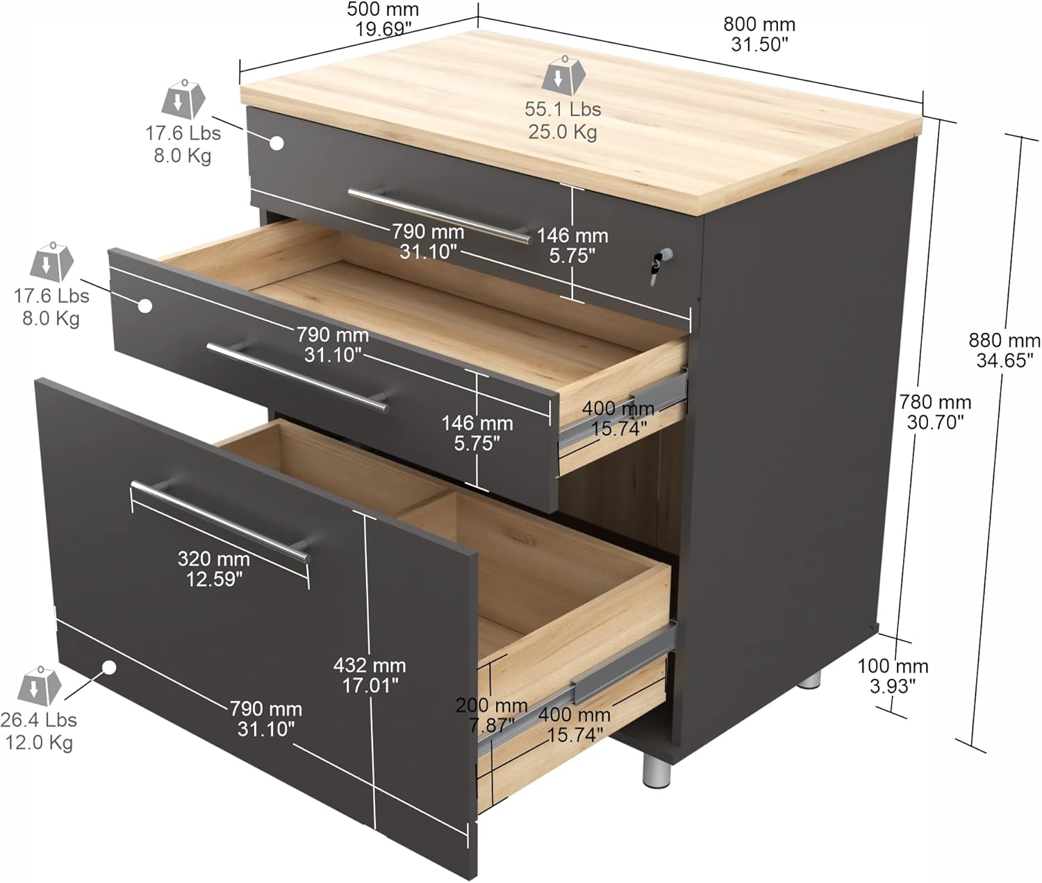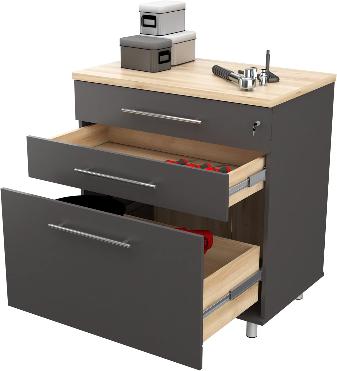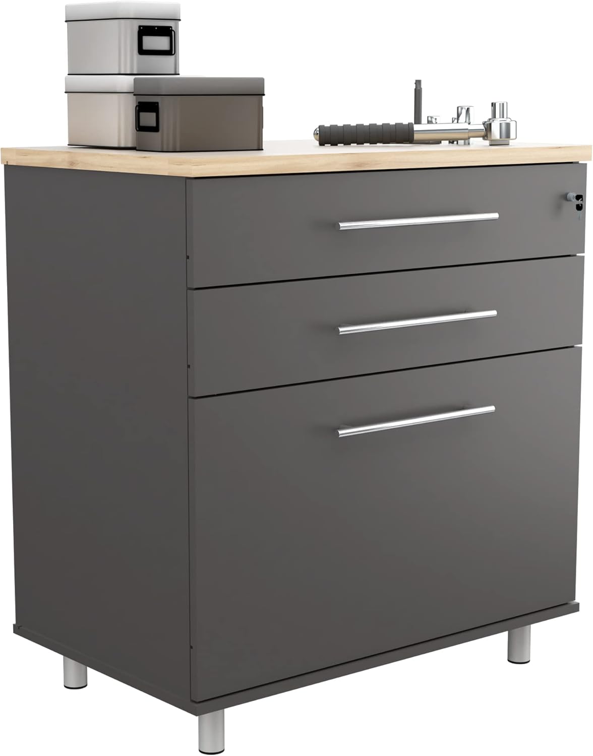Inval Engineered Wood Garage Storage, Kratos 3-Drawer Lower Cabinet, Dark Gray and Maple