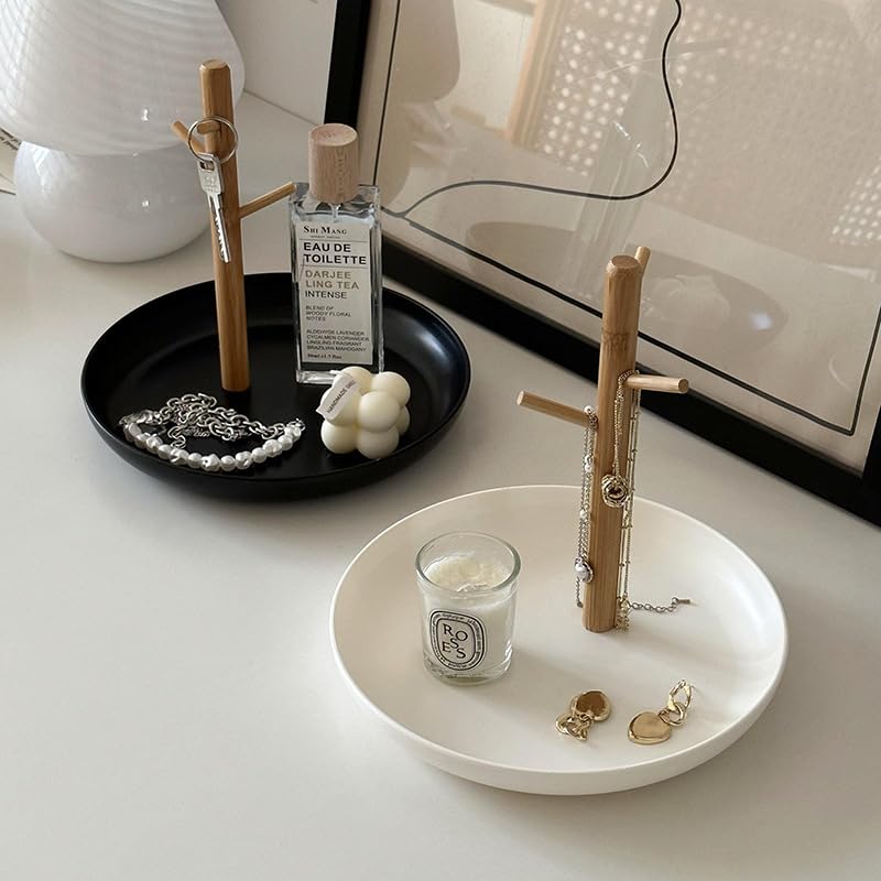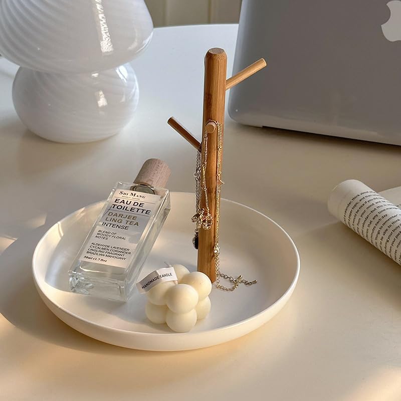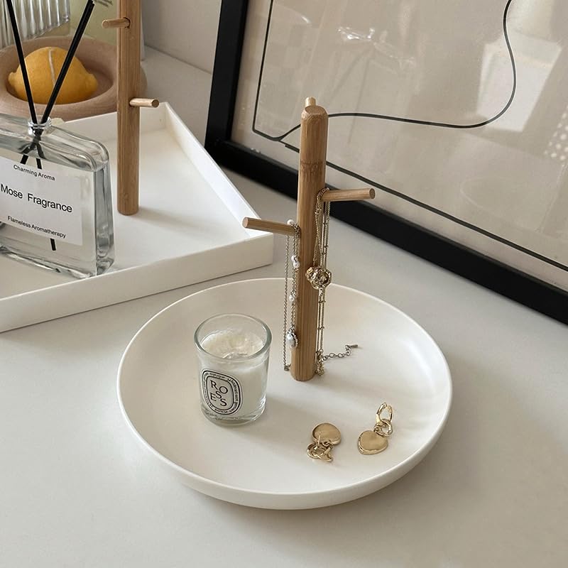 Shinpuru Key Tray & Key Bowl, Jewelry Tray with Wood 3-Tier Hanging Organizer - Multi-Functional Entryway Tray, Perfect for Key Bowl, Valet Tray, Ring Holder, Jewelry Dish Organize (White Oval)