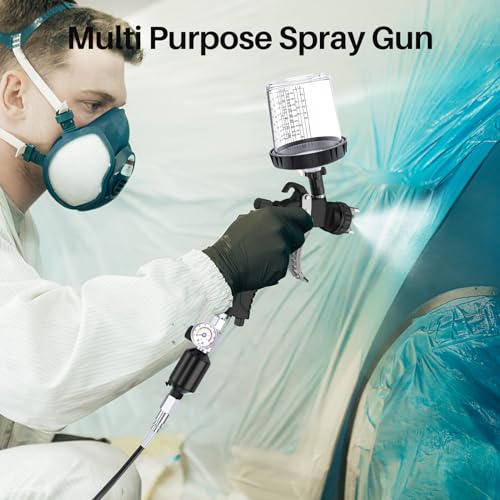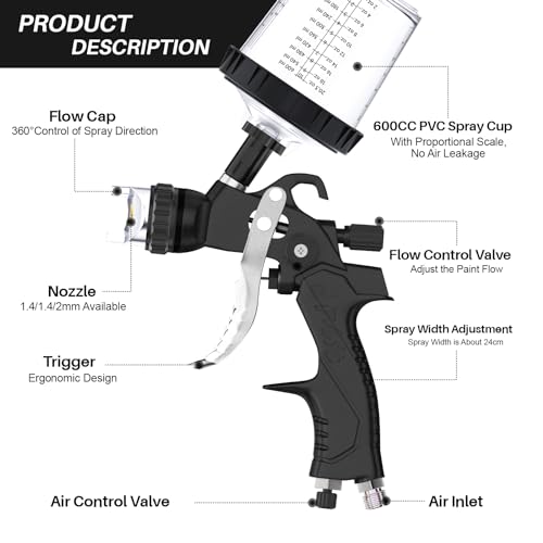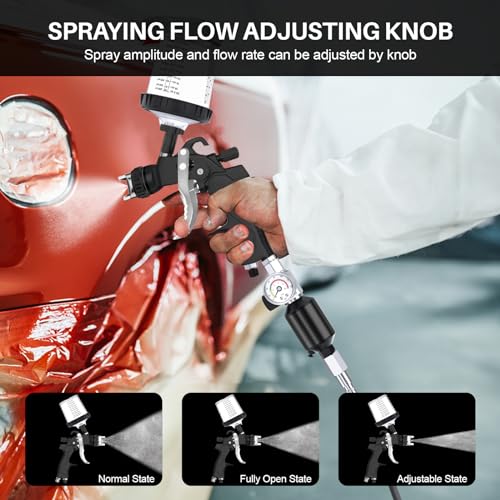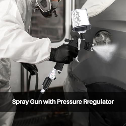 HVLP Air Spray Gun with 1.4/1.7/2mm Nozzles & Air Compressor Regulator, Air Spray Paint Gun w/10pcs 600cc Mixing Cup and Lids, Automotive Paint Sprayer for Car, House Painting, Furniture