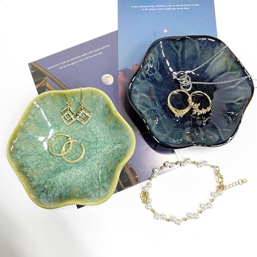 Ceramic Jewelry Dish, Leaf Jewelry Tray Key Tray, Jewelry Holder, Small Ring Dish Holder Jewelry Plate Trinket Tray Catchall Tray Nightstand Decor for Entryway Table Room Decor (Dark Blue)
