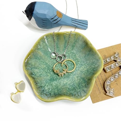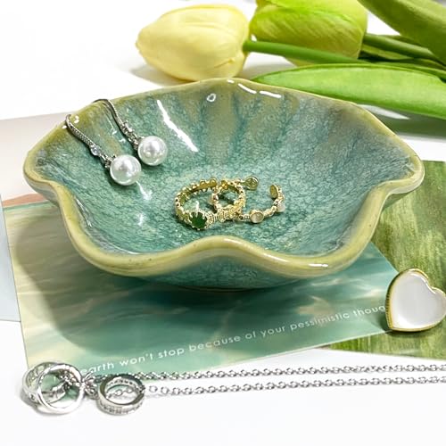 VanEnjoy Candy Dishes Decorative, Key Bowl for Entryway Table, Green Ceramic Bowl Decorative, Decorative Bowl for Keys, Leaf Jewelry Plate Tray