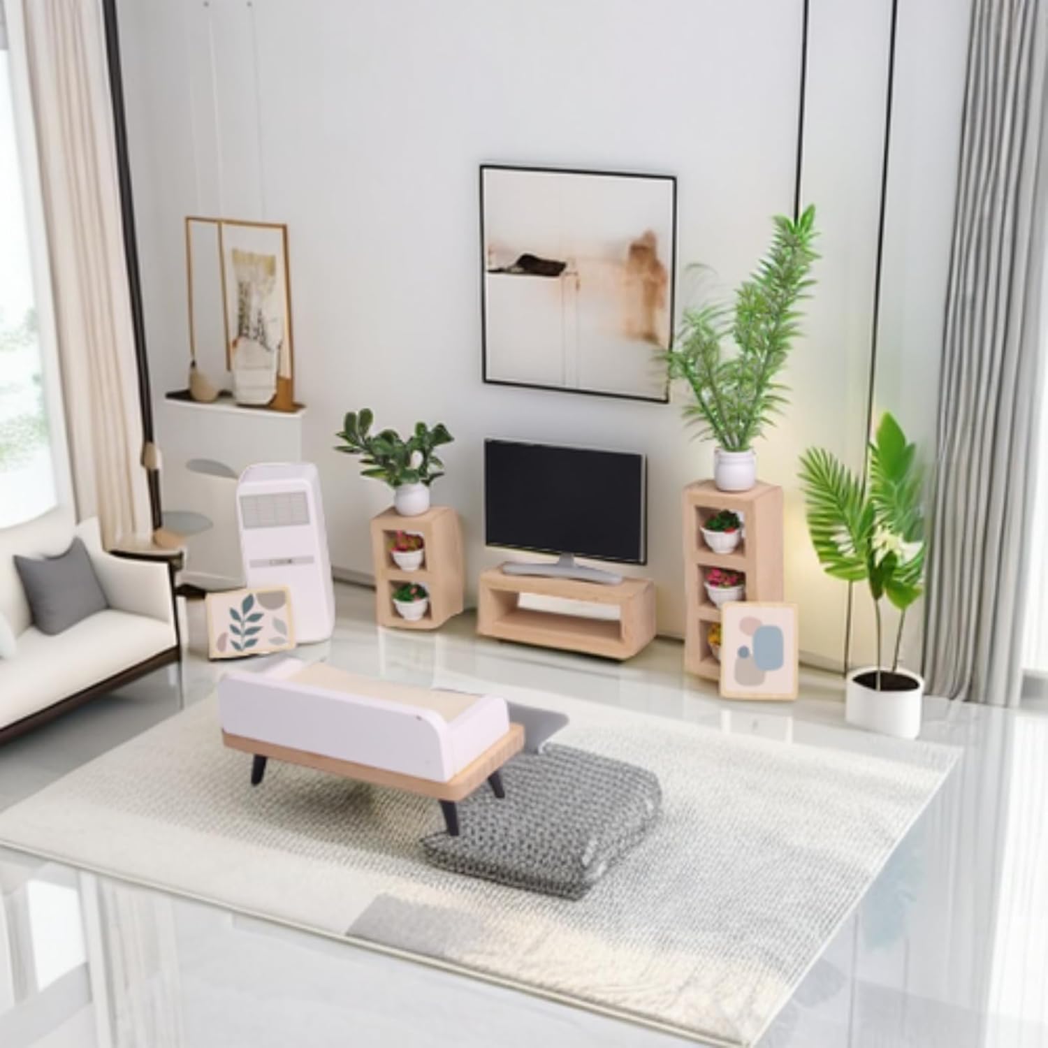 TIANFEI 18 PCS Wooden Dollhouse Furniture and Accessories, Miniature Sofas, TV Cabinets, Air Conditioner, Carpet and Modern Dollhouse Living Room Decorations, Miniature Furniture Set for Teenager