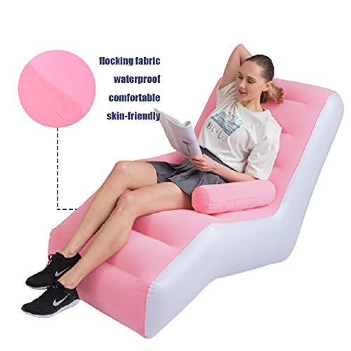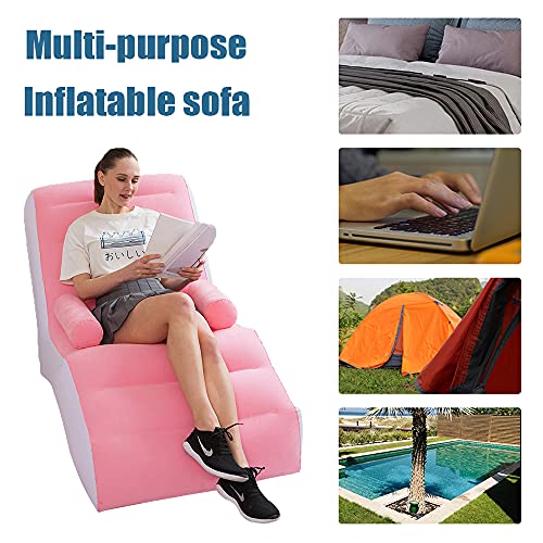 PLKO Inflatable Chaise with Household air Pump,Lounger Sofa for Indoor Living Room Bedroom, Outdoor Travel Camping Picnic,pink