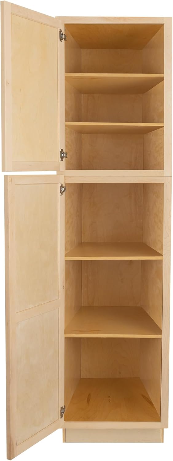 Quicklock RTA (Ready-to-Assemble) | Base Kitchen Cabinets - Shaker Style | 100% Plywood | Made in America | Soft Close Hardware (Raw Maple, 24" D x 24" W x 96" H Pantry)