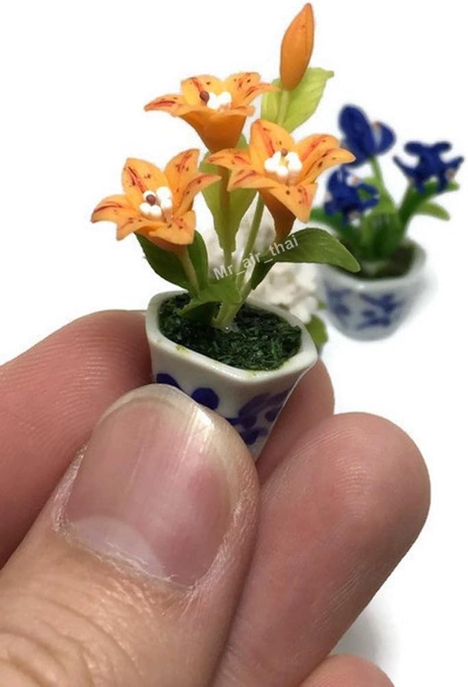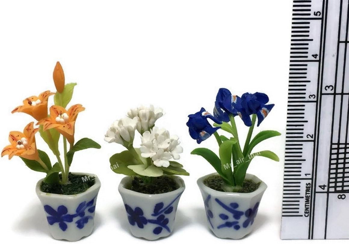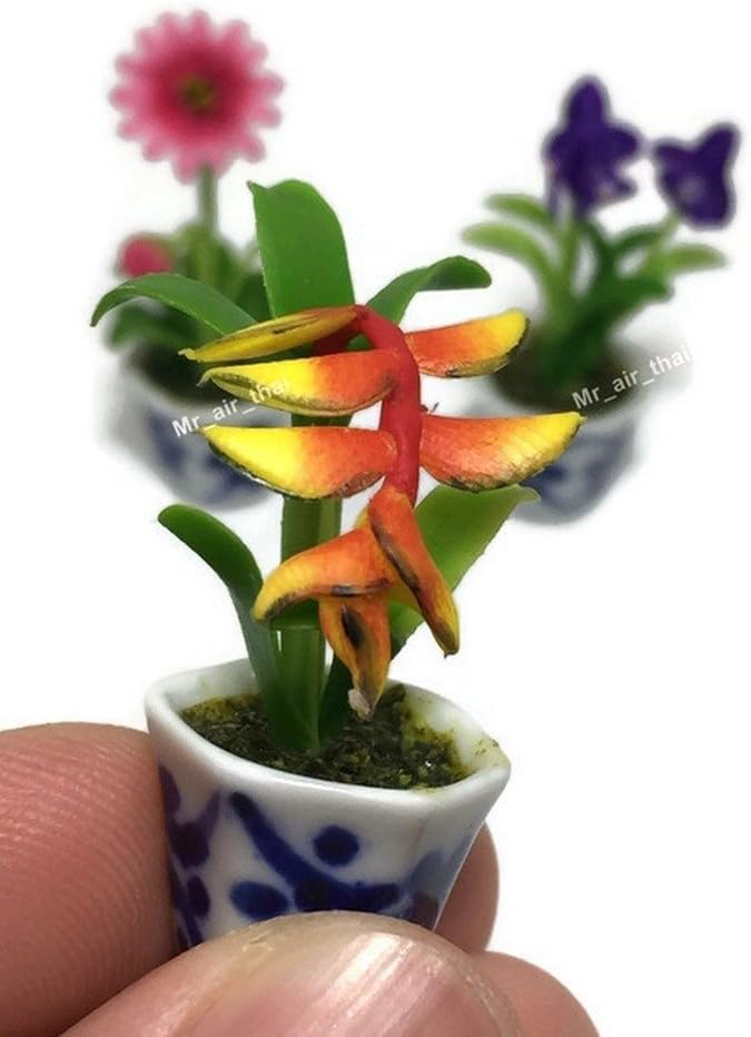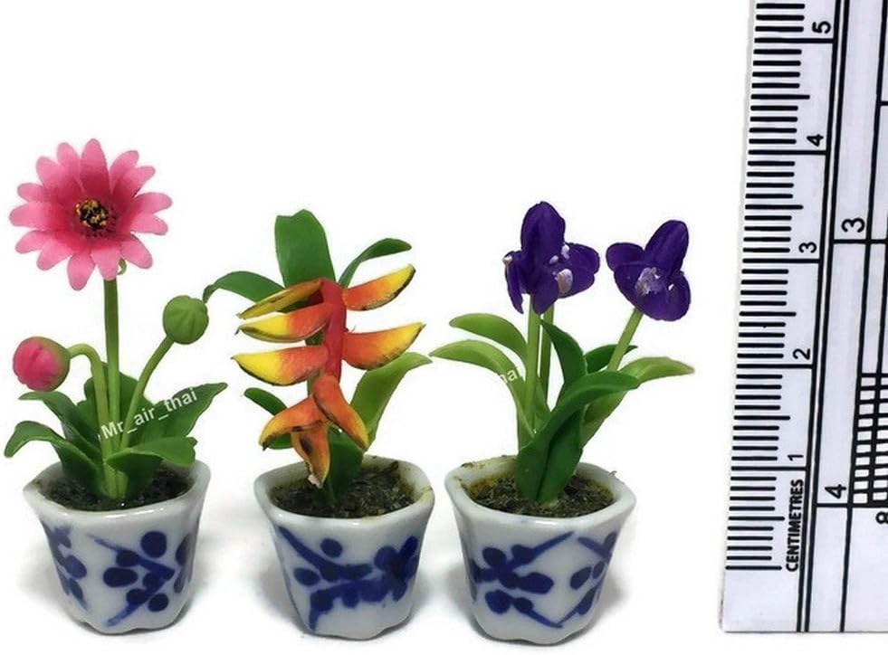 3pc Miniature Flower Clay Dollhouse Fairy Garden Mini Plant Trees Ceramic Paint Furniture Bundles Artificial Flowers Tiny Orchid #088