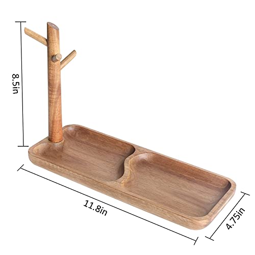Walnut Wood Key Tray for Entryway Table, Jewelry Tray, Catchall Tray with 3 Stand Hanging Organizer, for Rings, Phone, Bracelets Watches