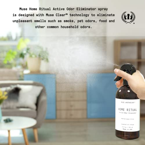 Muse Apothecary Home Ritual Active Odor Eliminator Spray - Odor Eliminator for Home - Furniture Deodorizer Spray & Bathroom Odor Eliminator - Essential Oil Air Freshener - 8oz, Mediterranean Citrus 1