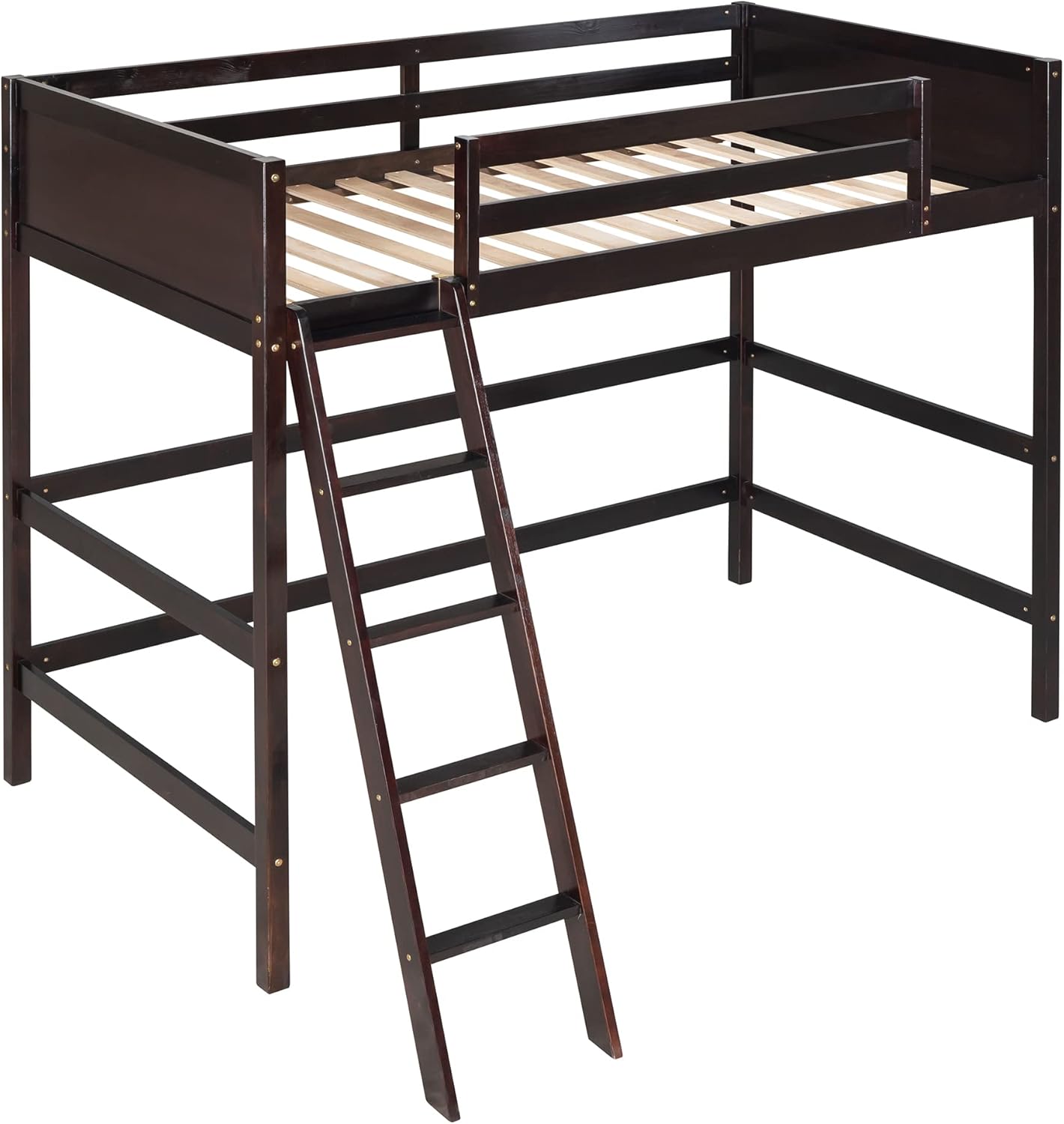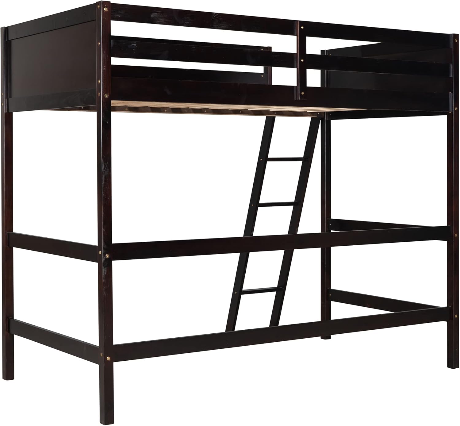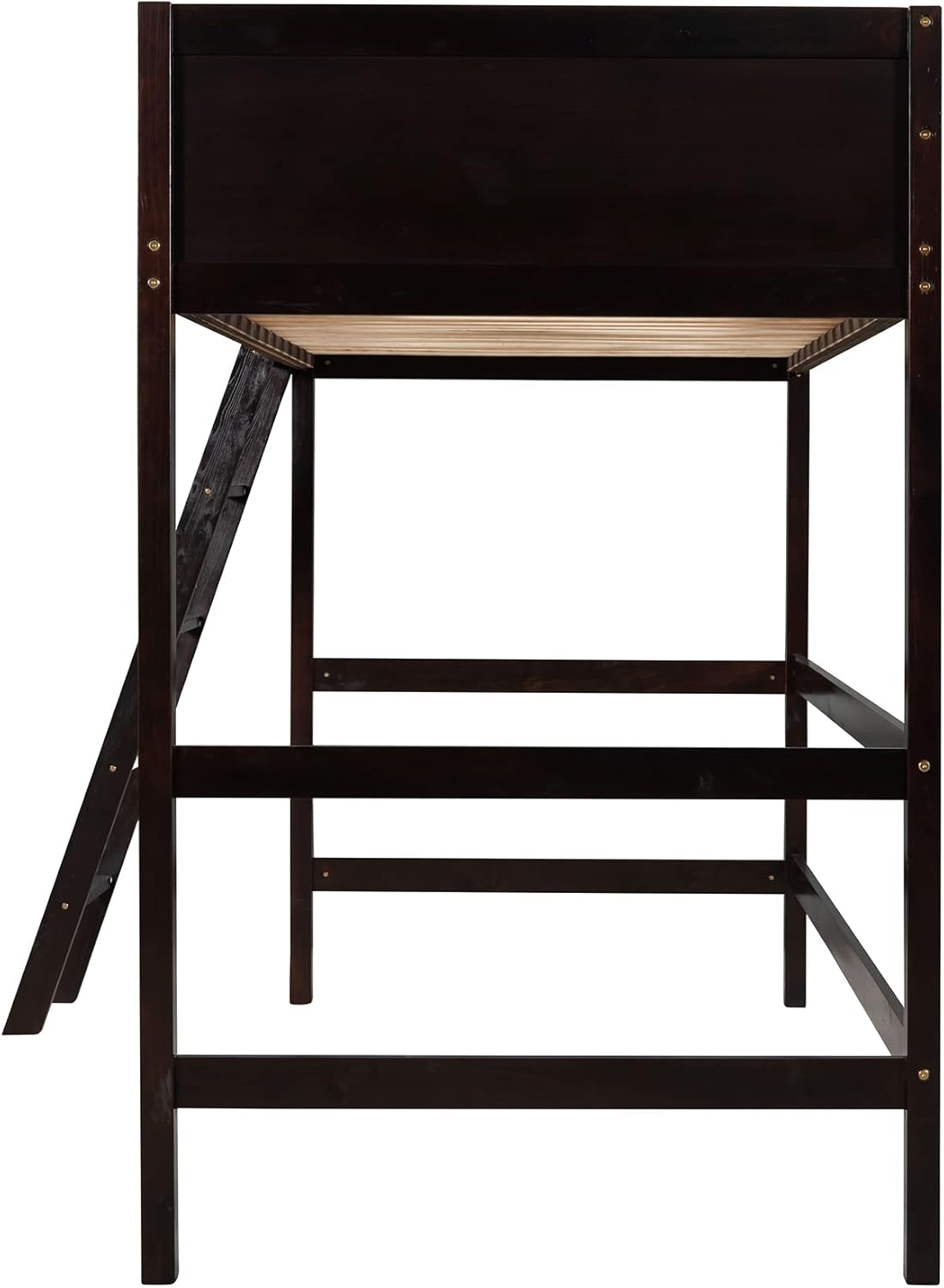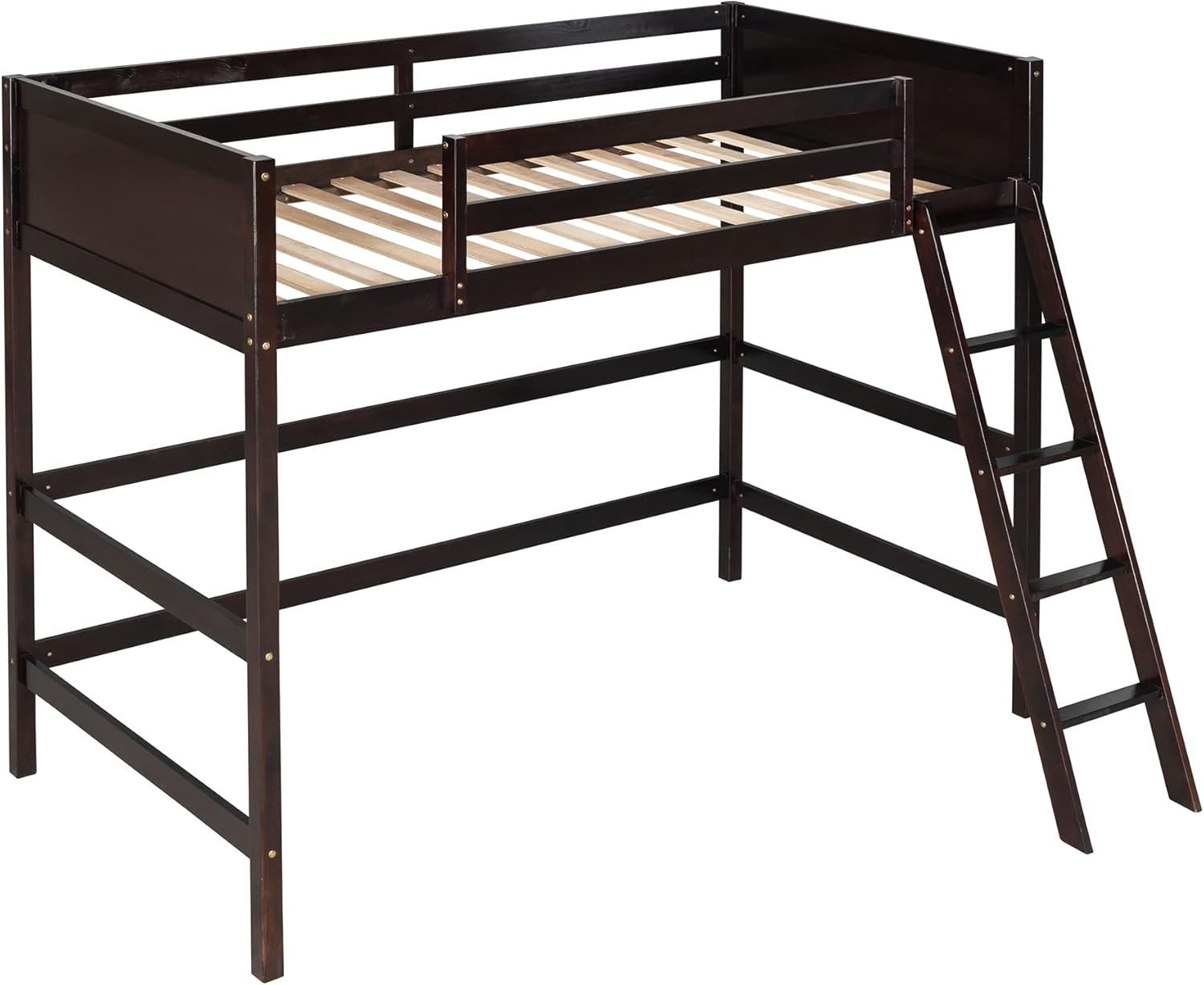 Harper & Bright Designs Twin Size Loft Bed with Ladder, Wooden Loft Bed Frame for Kids Teens Adults, Espresso