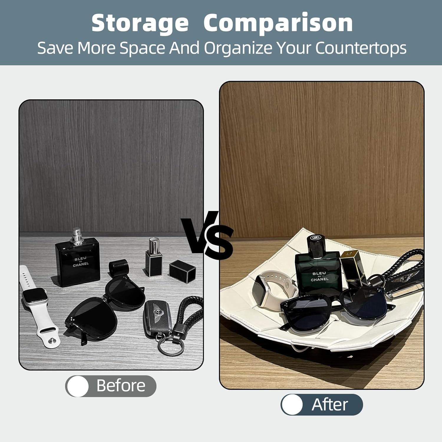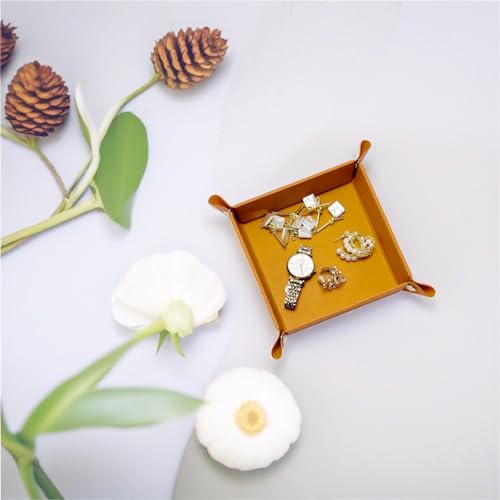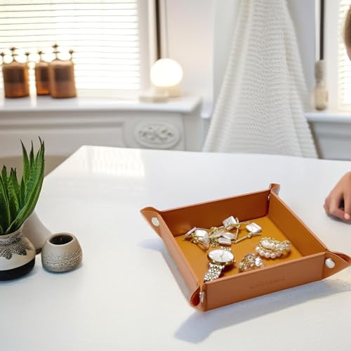 PU Leather Valet Tray for Men, Portable Key Bowl for Entryway Table, Bedside Nightstand Desk Catchall Organizer Tray, EDC Dump Tray for Wallet, Watch, Remote, Coin Change, Phone, Jewelry