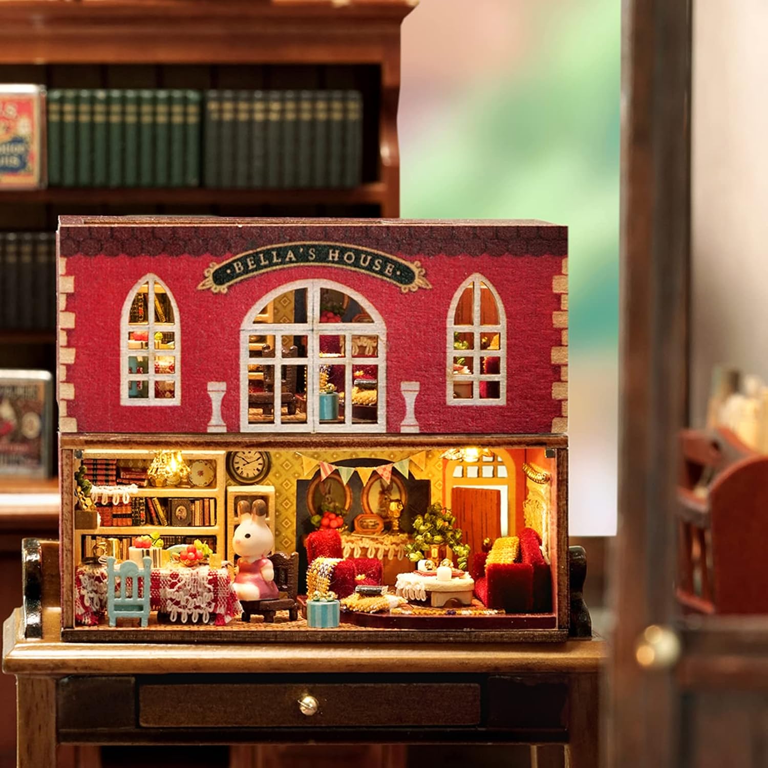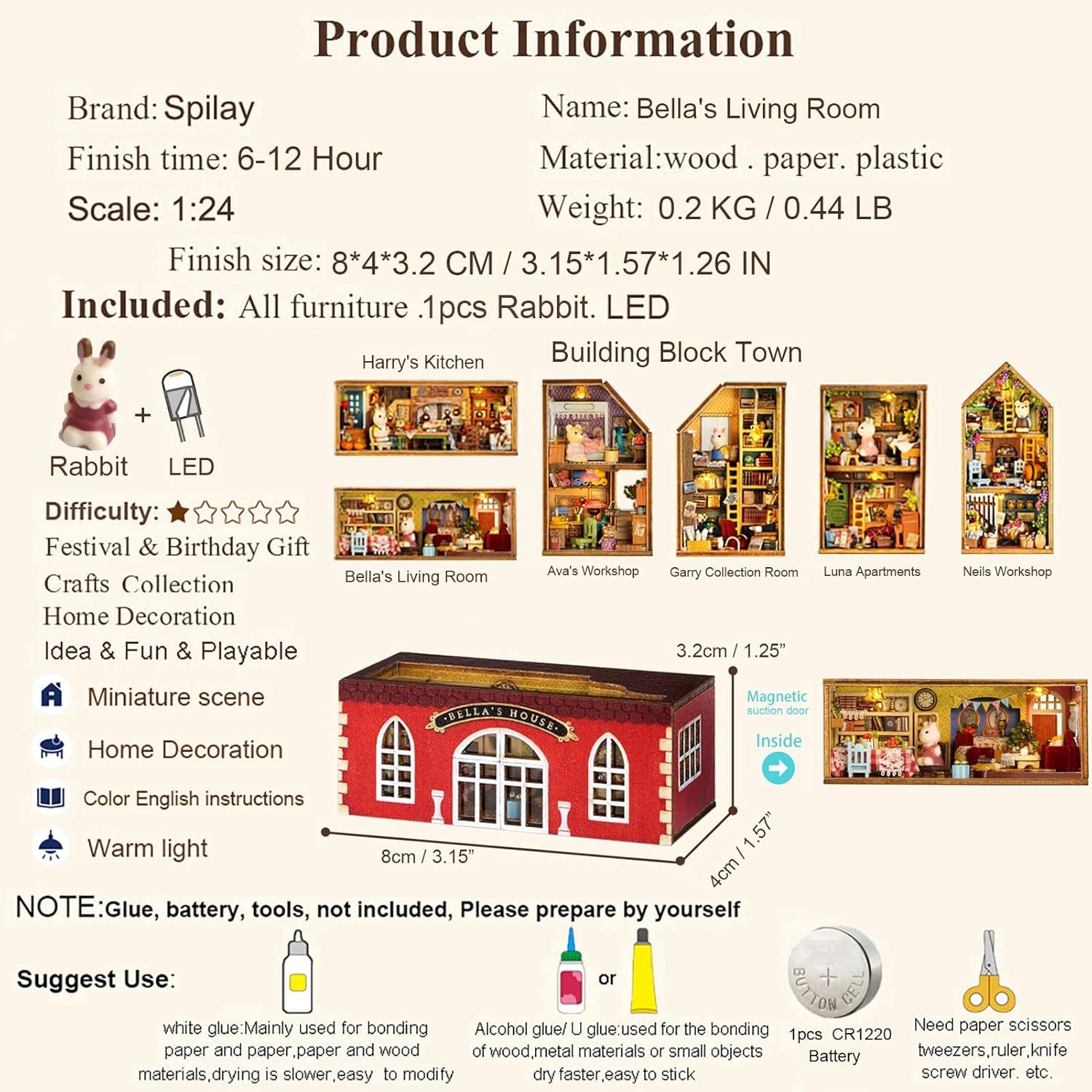 Spilay DIY Miniature Dollhouse Kit with Wooden Furniture,1:24 Scale Mini House Creative Gift for Women Girl Friend Lover QH01