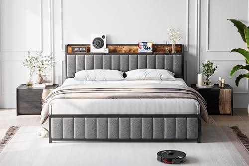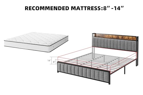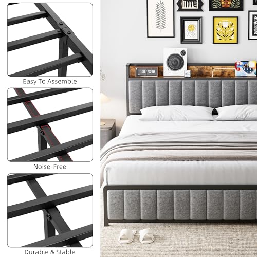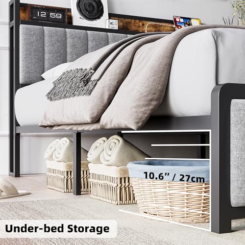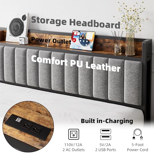 GAOMON Full Bed Frame with Storage Headboard and Charging Station, Upholstered Platform Bed Frame, Solid and Stable, Noise Free, Full Bed Frame No Box Spring Needed, Easy Assembly, Black