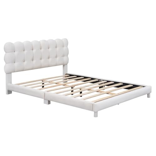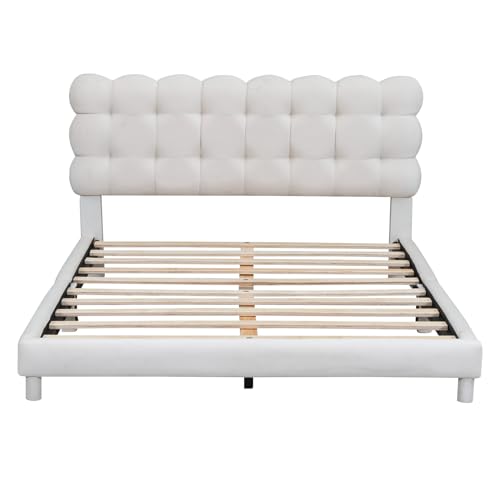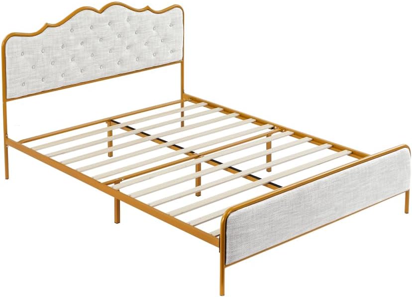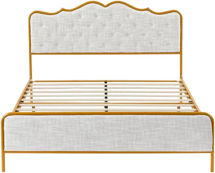 Buckle Shaped Backrest, Metal Frame, Solid Wood Ribs, Sponge Soft Bag, Comfortable and Elegant Atmosphere, Light Gray, Full-Size, F Sleeping Bed Foam Metal&Wood W1708105867