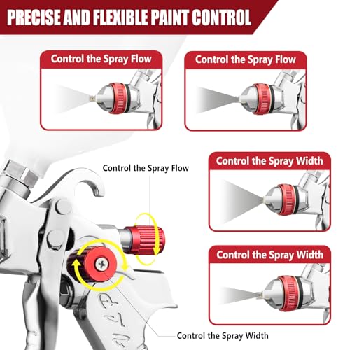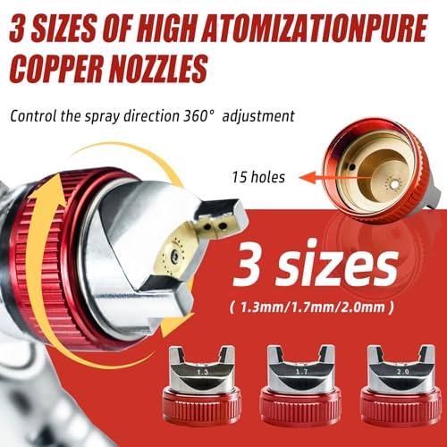 HVLP Spray Gun, Gravity Feed Air Spray Gun Kit with Air Regulator, 600cc, 1.3/1.7/2.0mm Nozzles Auto Paint Spray Gun, Sprayer Paint Guns for House Painting, Primer Car, Furniture, Fence (Red)