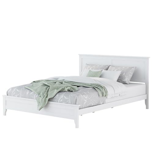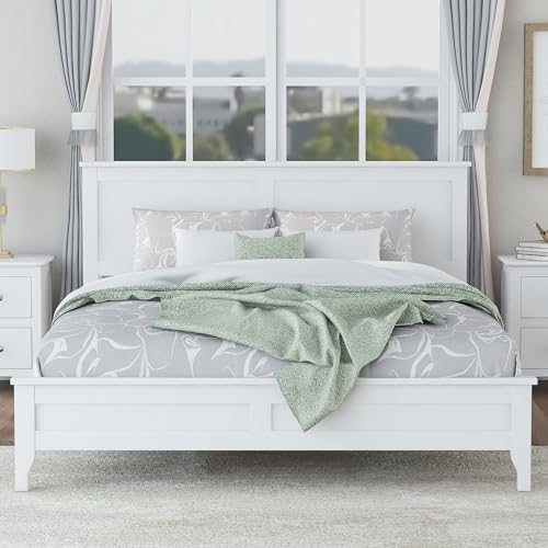 Wood Bed Frame with Headboard Wood Platform, No Box Spring Needed,White (Queen (U.S. Standard))