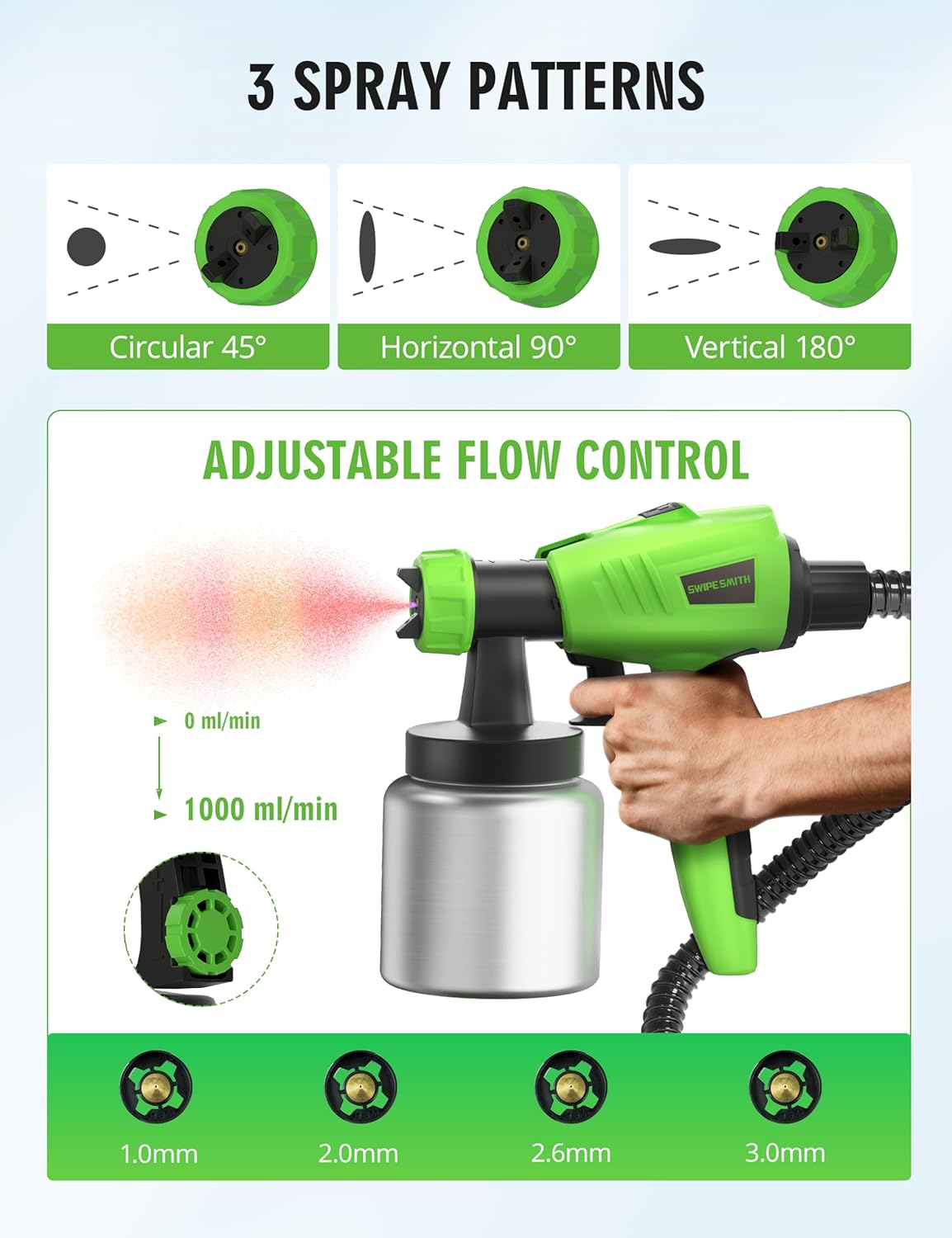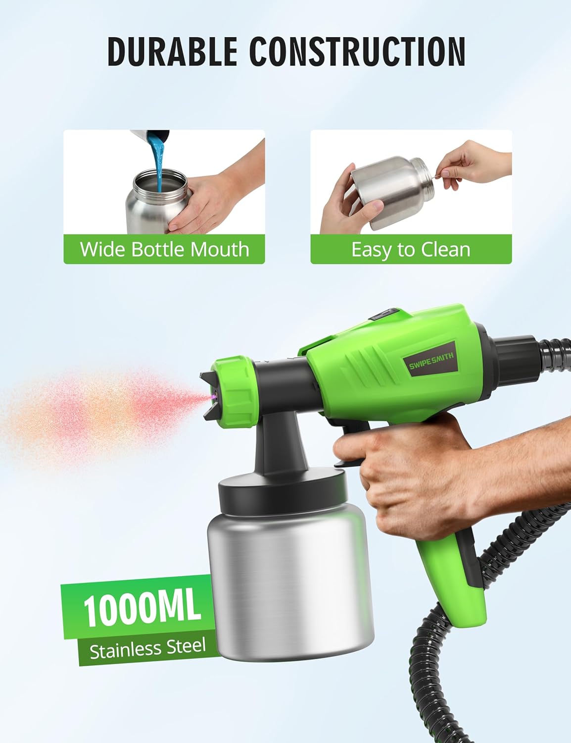 HVLP Electric Paint Sprayer, SWIPESMITH 800W Paint Sprayer Gun with Stainless Steel Paint Bottle & 4 Copper Nozzles for House Interior and Exterior, Furniture, Fence, Walls, DIY Works, Ceiling