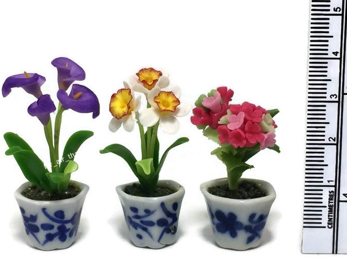 3pc Miniature Flower Clay Dollhouse Fairy Garden Mini Plant Trees Ceramic Paint Furniture Bundles Artificial Flowers Tiny Orchid #117