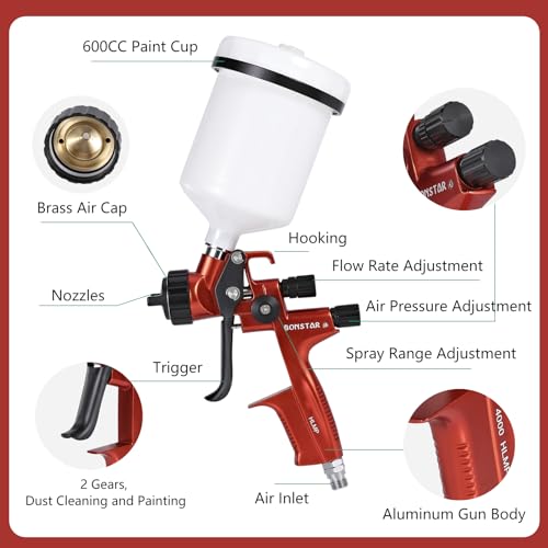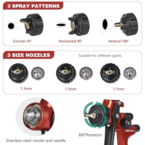 Spray Paint Gun with 1.3/1.5/1.7mm Nozzles Pressure Gauge,Air Compressor HVLP Paint Sprayer Gun,Small Spray Gun for Painting,Automotive Pneumatic Gravity Feed Spray Gun Kit for Cars,Furniture,House
