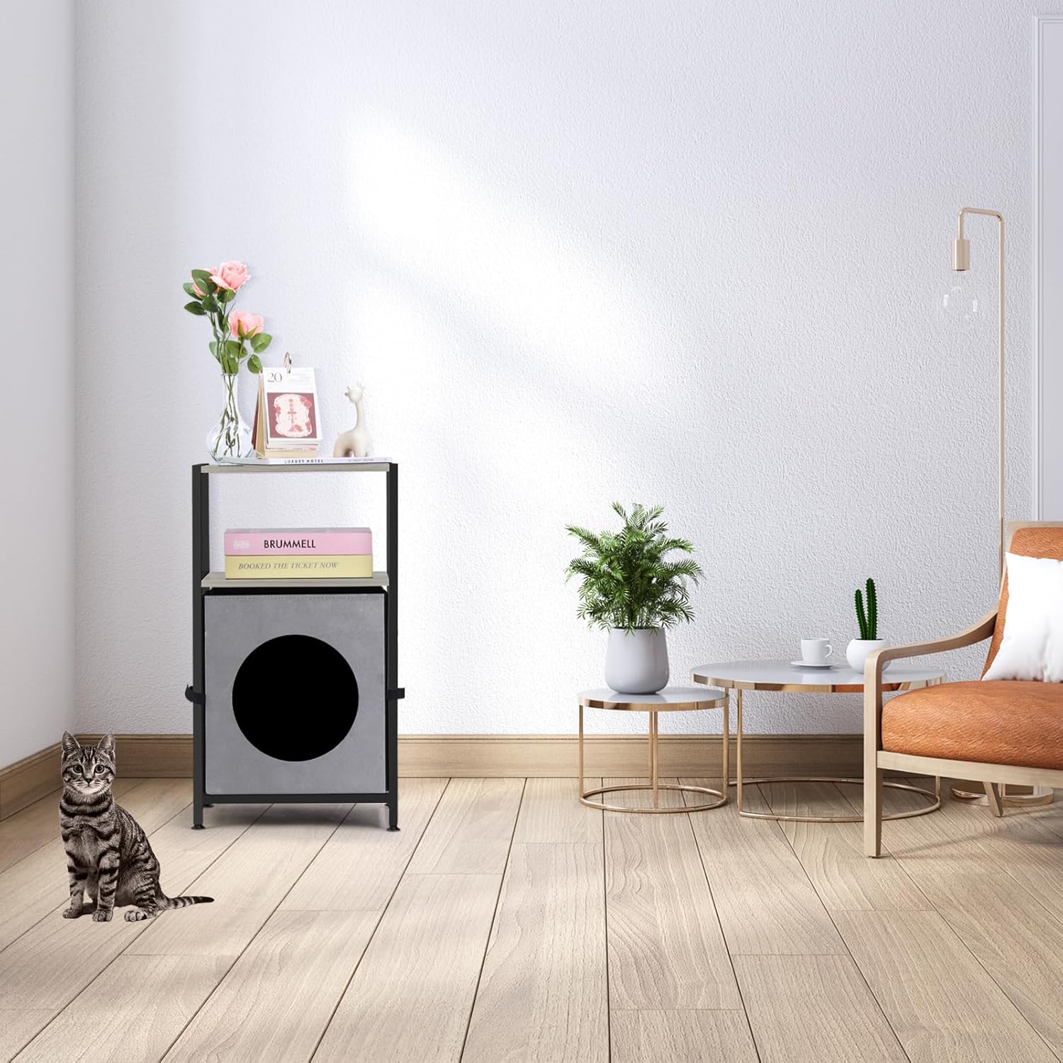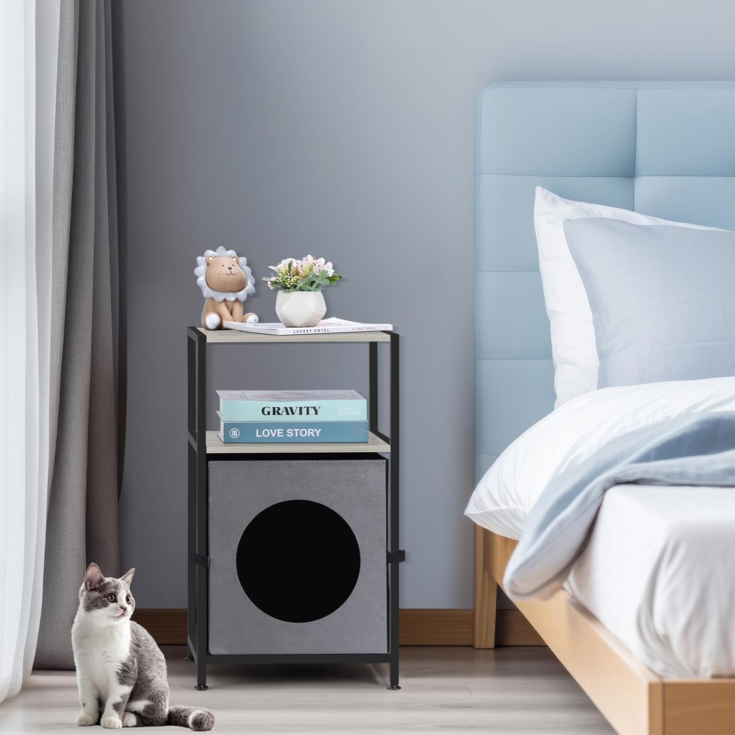 MOOACE Cat House, Hidden Cats House Furniture Shelves Storage, Indoor Cat Shelter Cabinet Pet Cave Bed End Table with Storage Shelf, Black