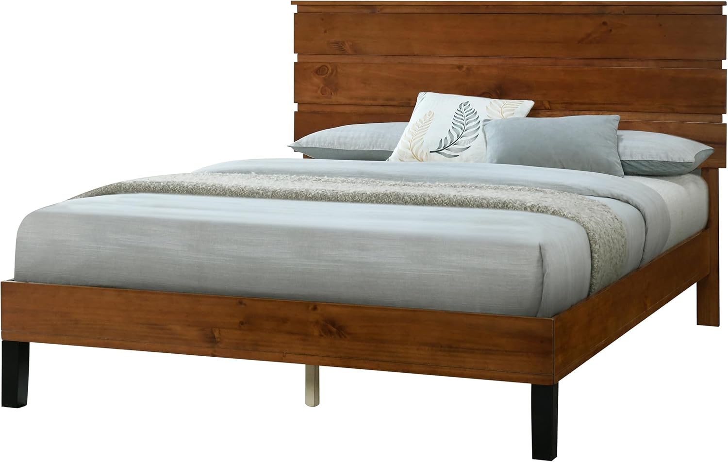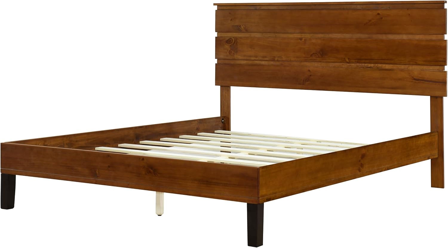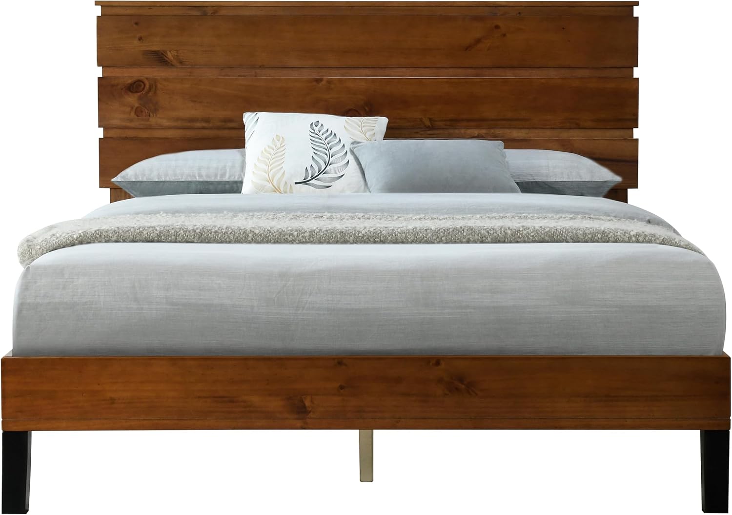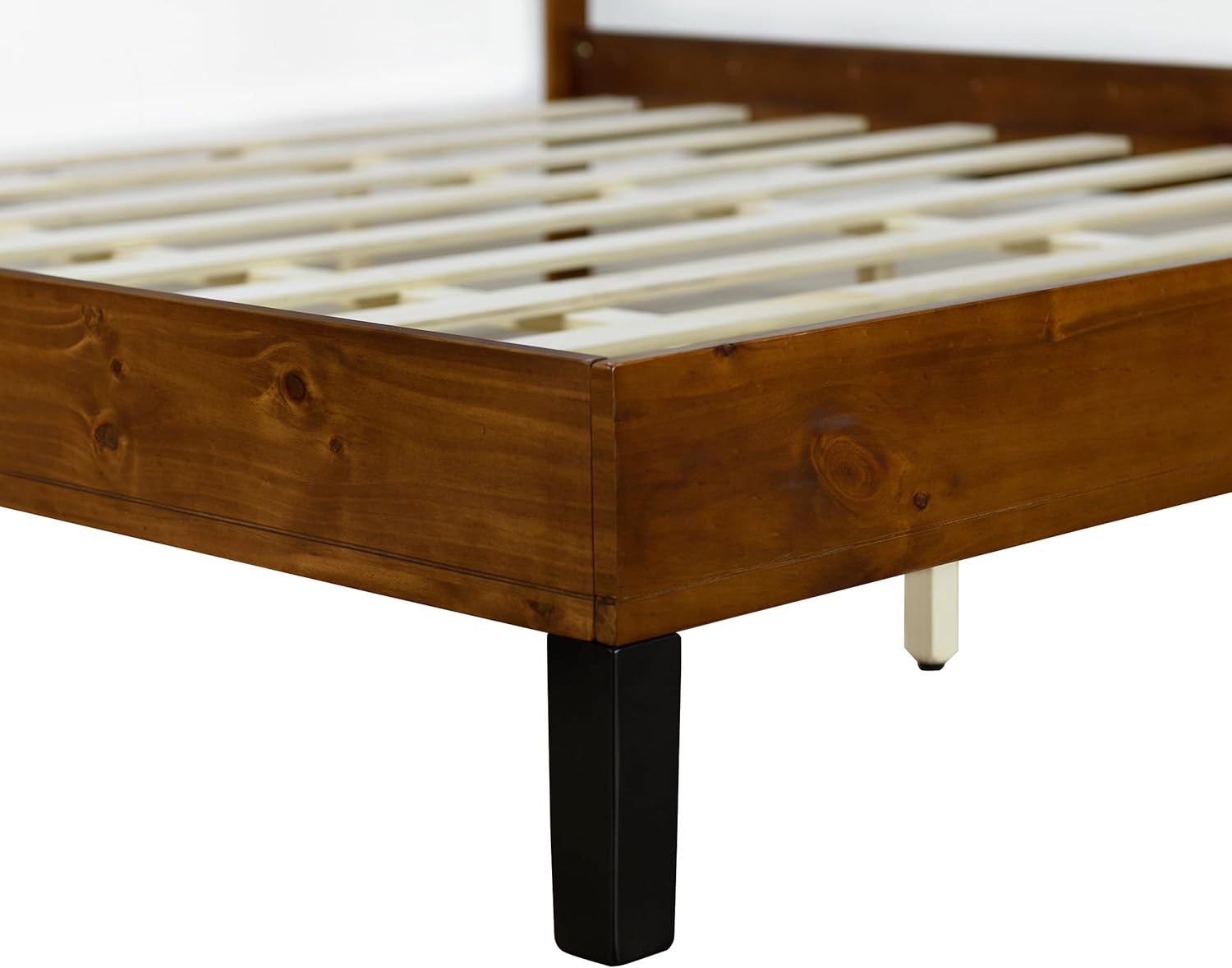 Mid-Century Modern Full Size Platform Bed with Three-Piece Headboard,Unique Design Solid Wood Bed Frame with Wood Slat Support,No Box Spring Needed,Easy Assemble